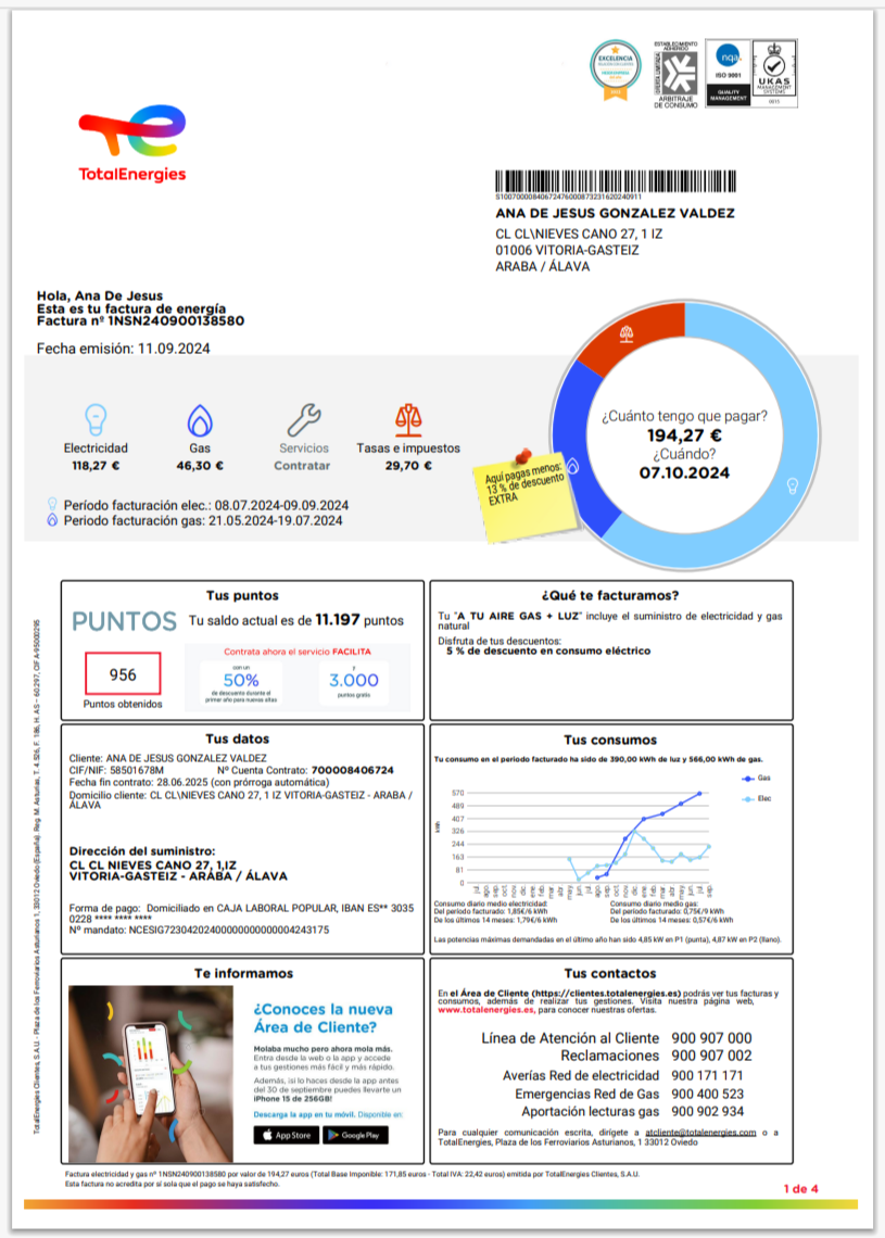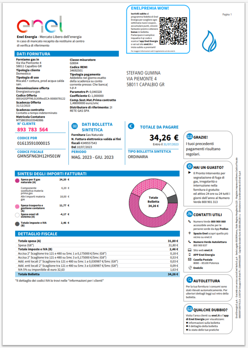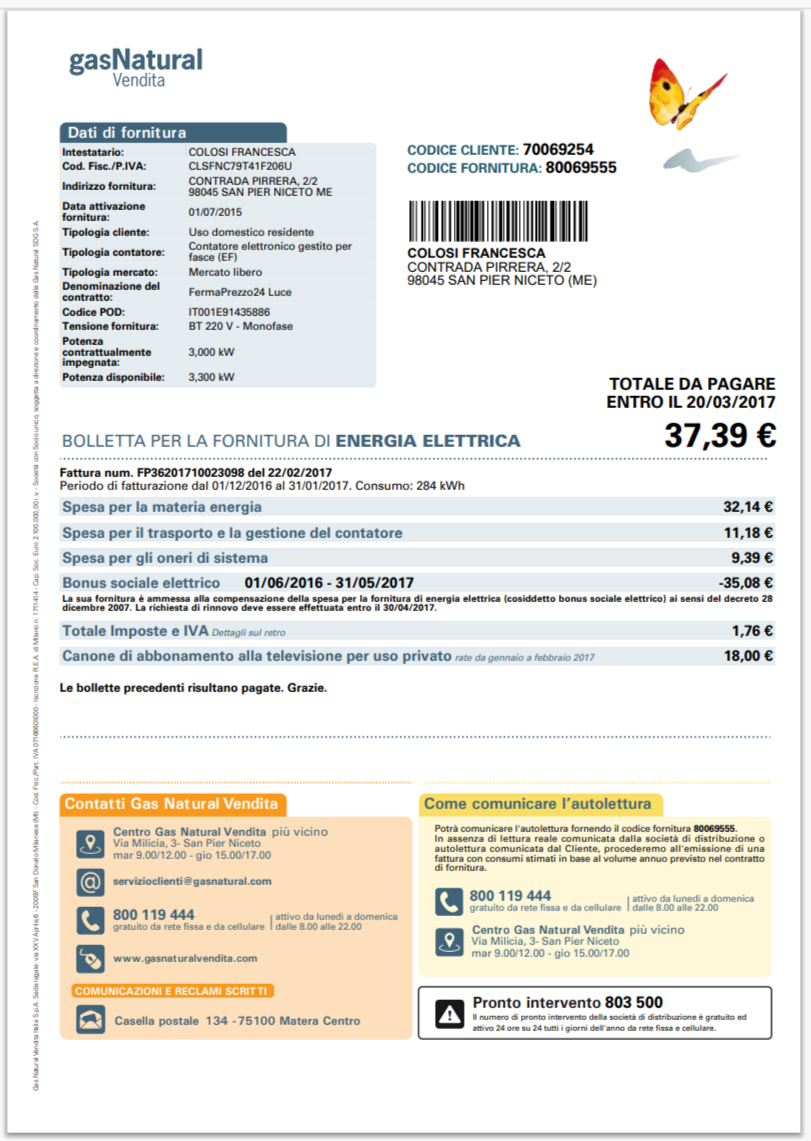 Italy Gas Natural Vendita Electricity Bill Template in Word And Pdf