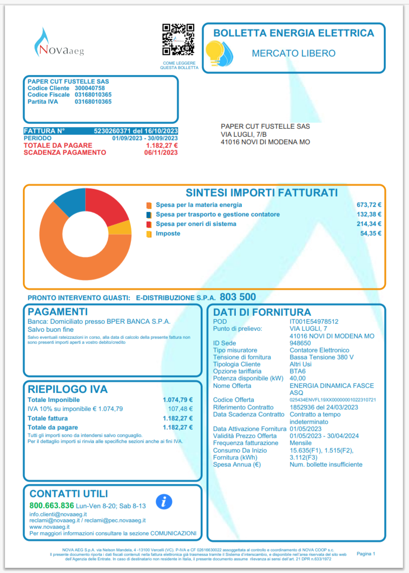 Italy NOVA AEG Electricity Bill Template in Word And Pdf