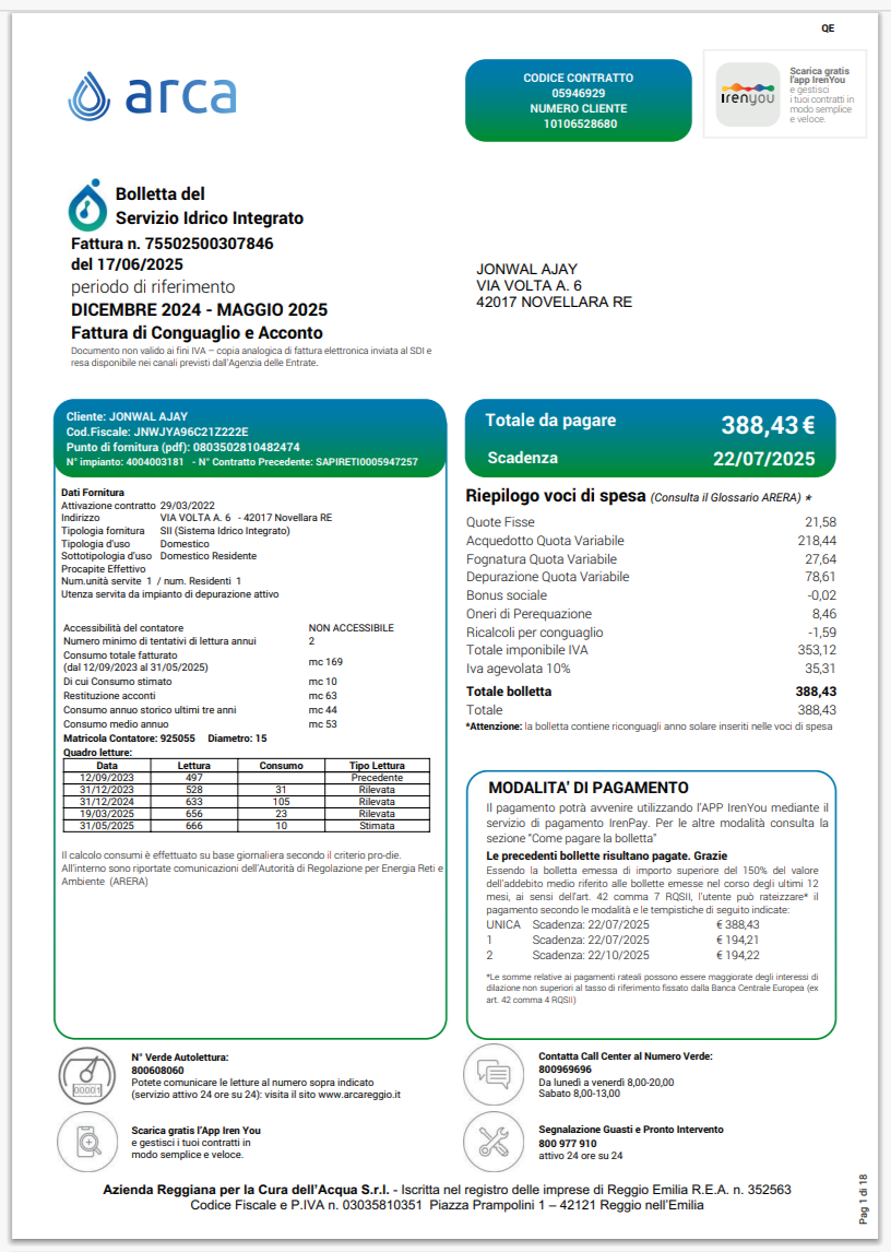 Italy IREN Integrated Water Service Bill Template in Word And Pdf