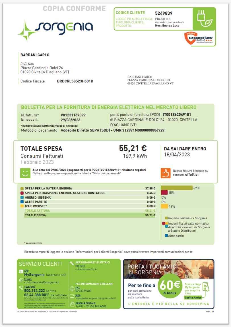 Italy Sorgenia Electricity Bill Template in Word And Pdf