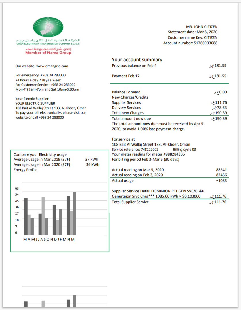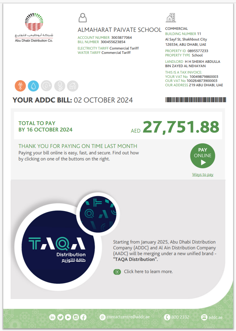 UAE Company Electricity Bill Template in Word And Pdf