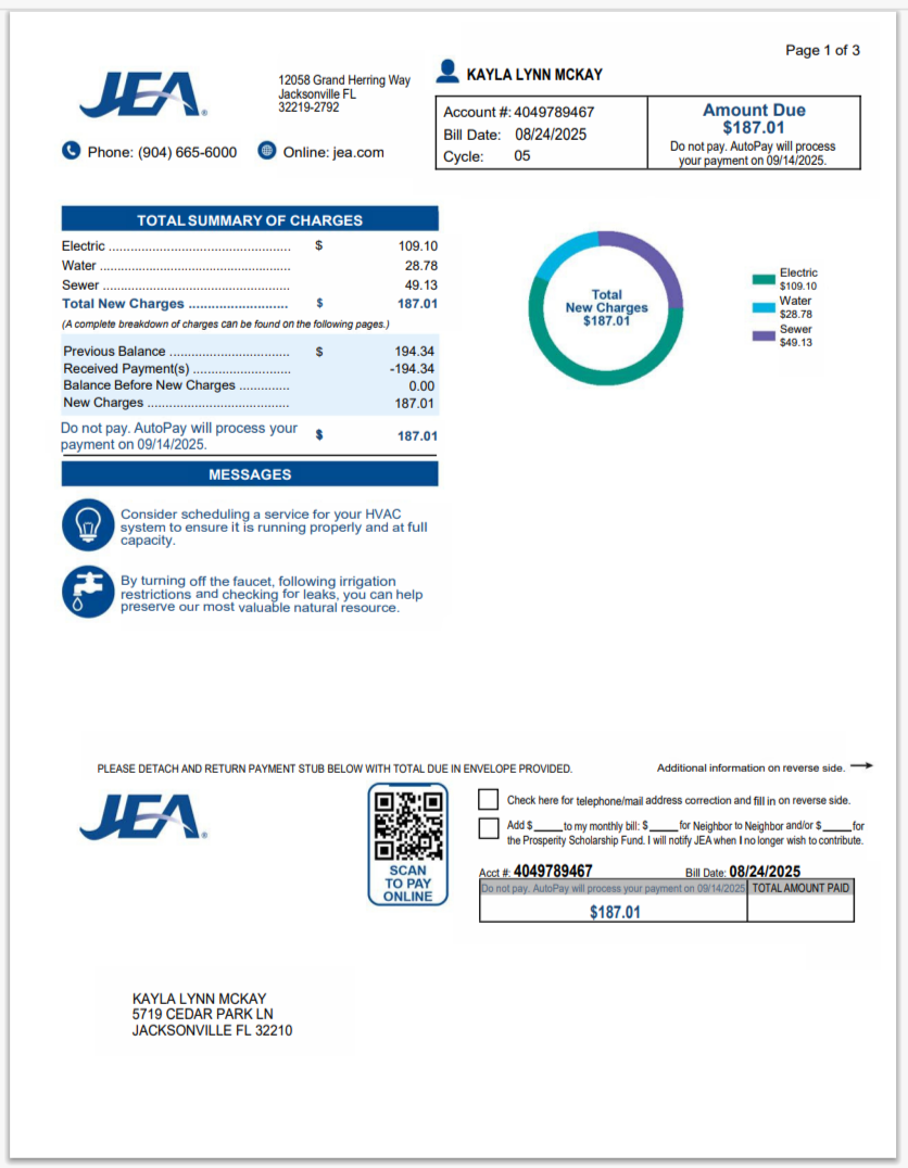 USA Florida Utilities Bill Template in Word And Pdf