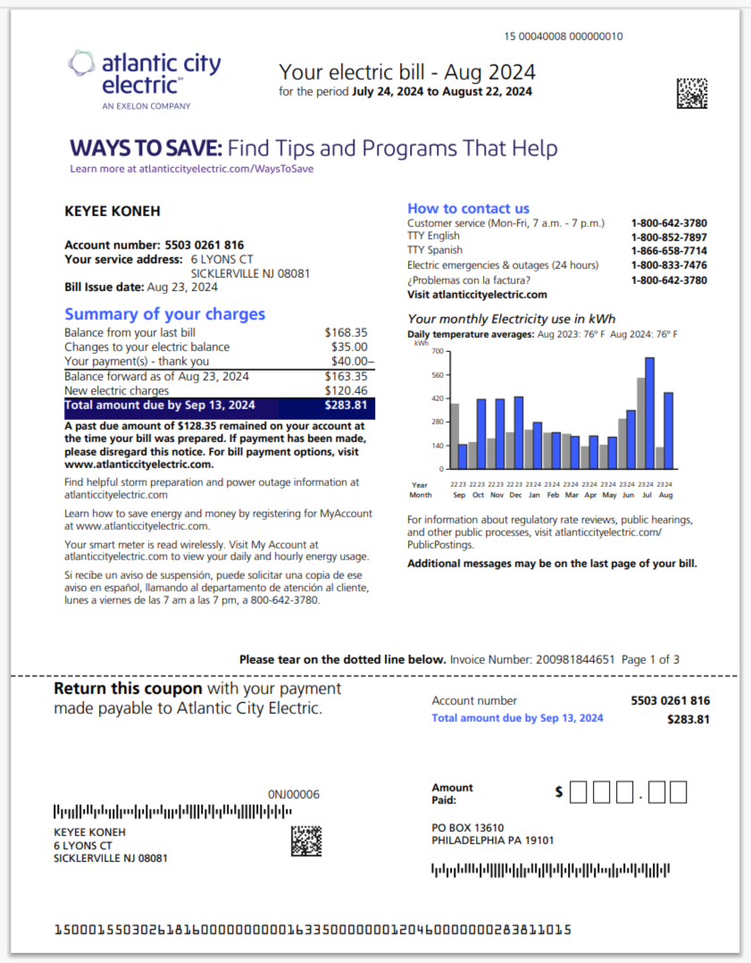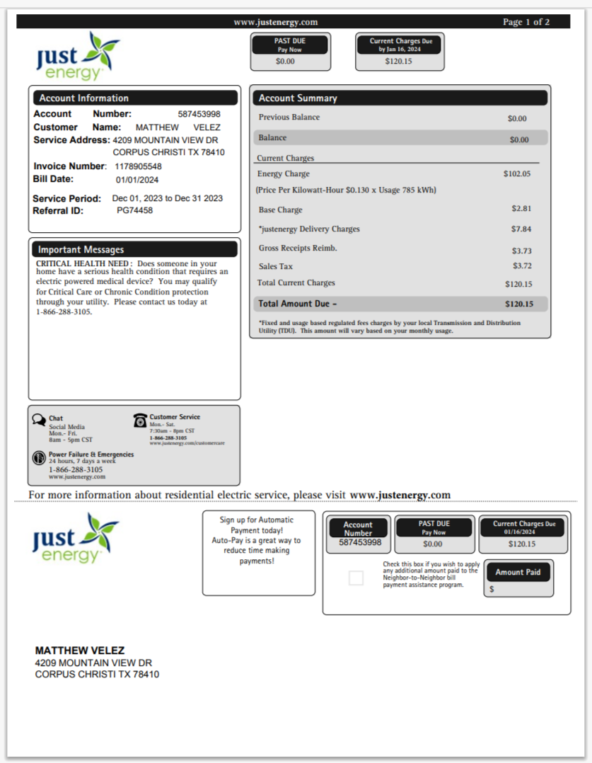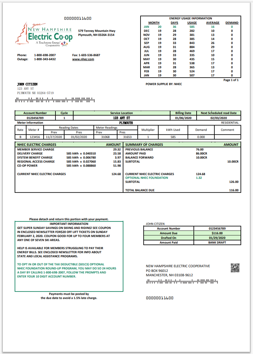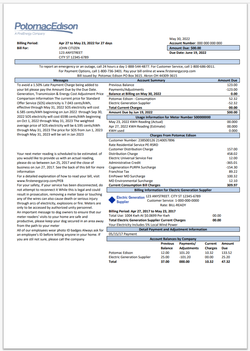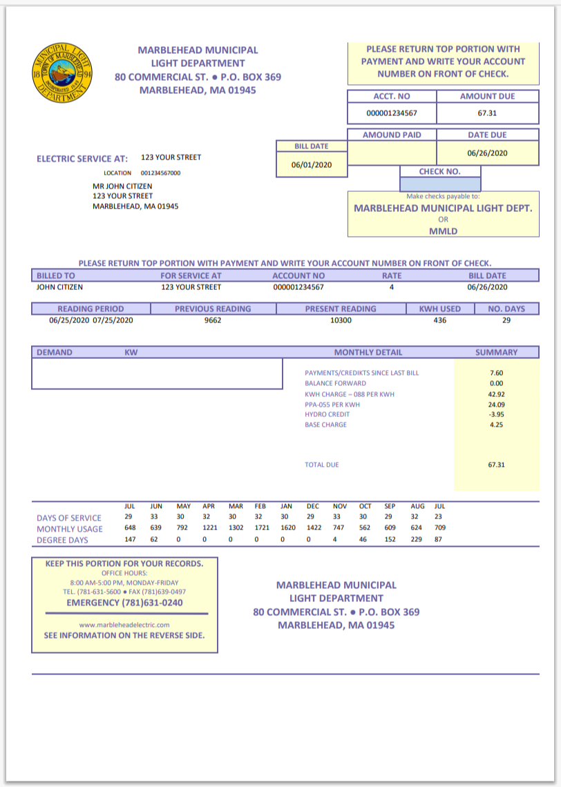 USA Massachusetts Energy Plus Electricity Utility Bill Word And PDF