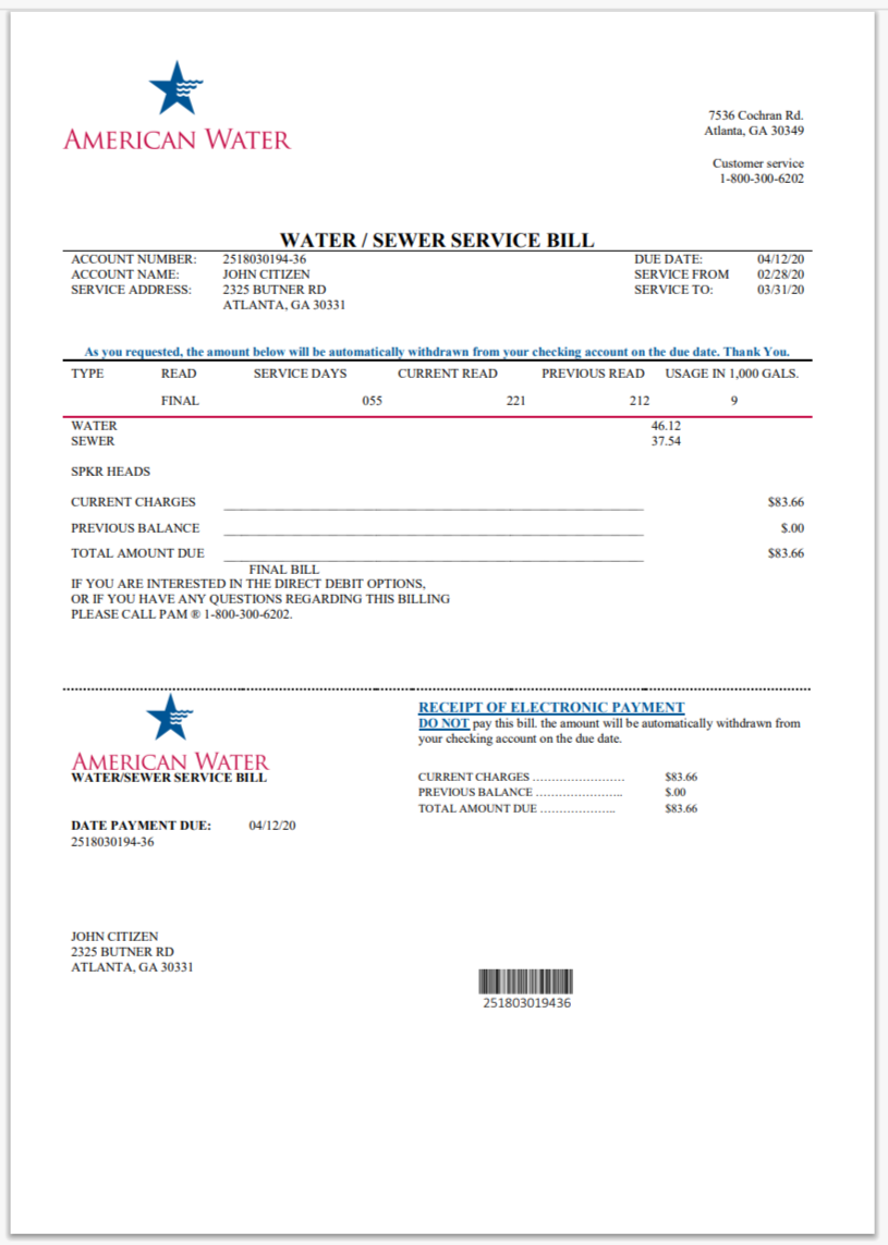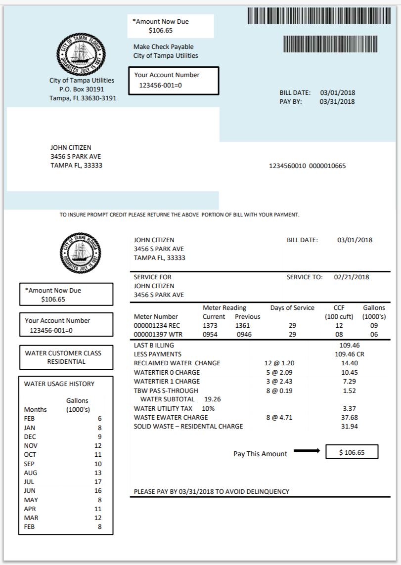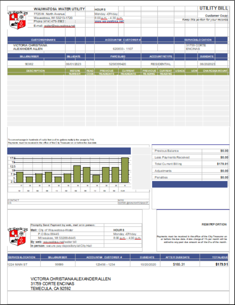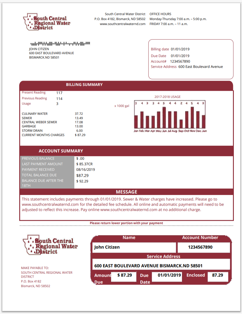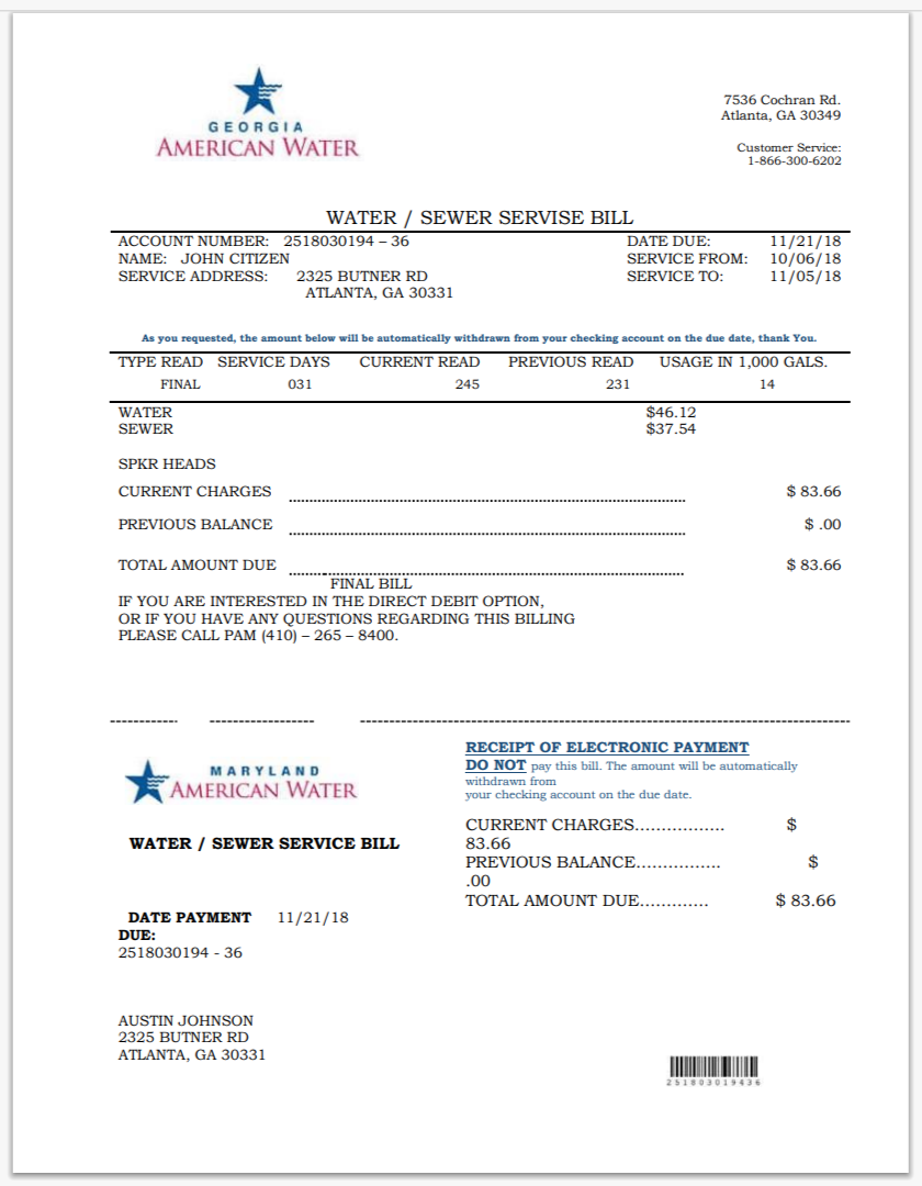 USA City Of Utility Statement Water Utility Bill Word And PDF
