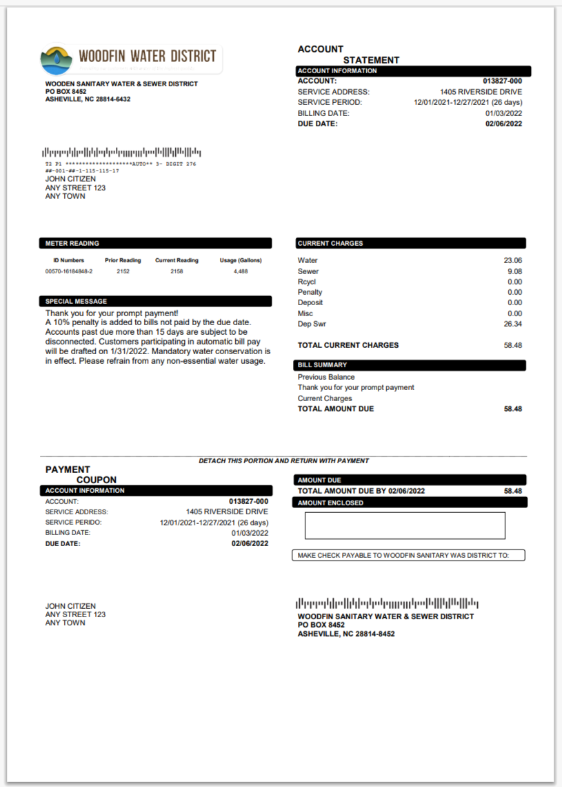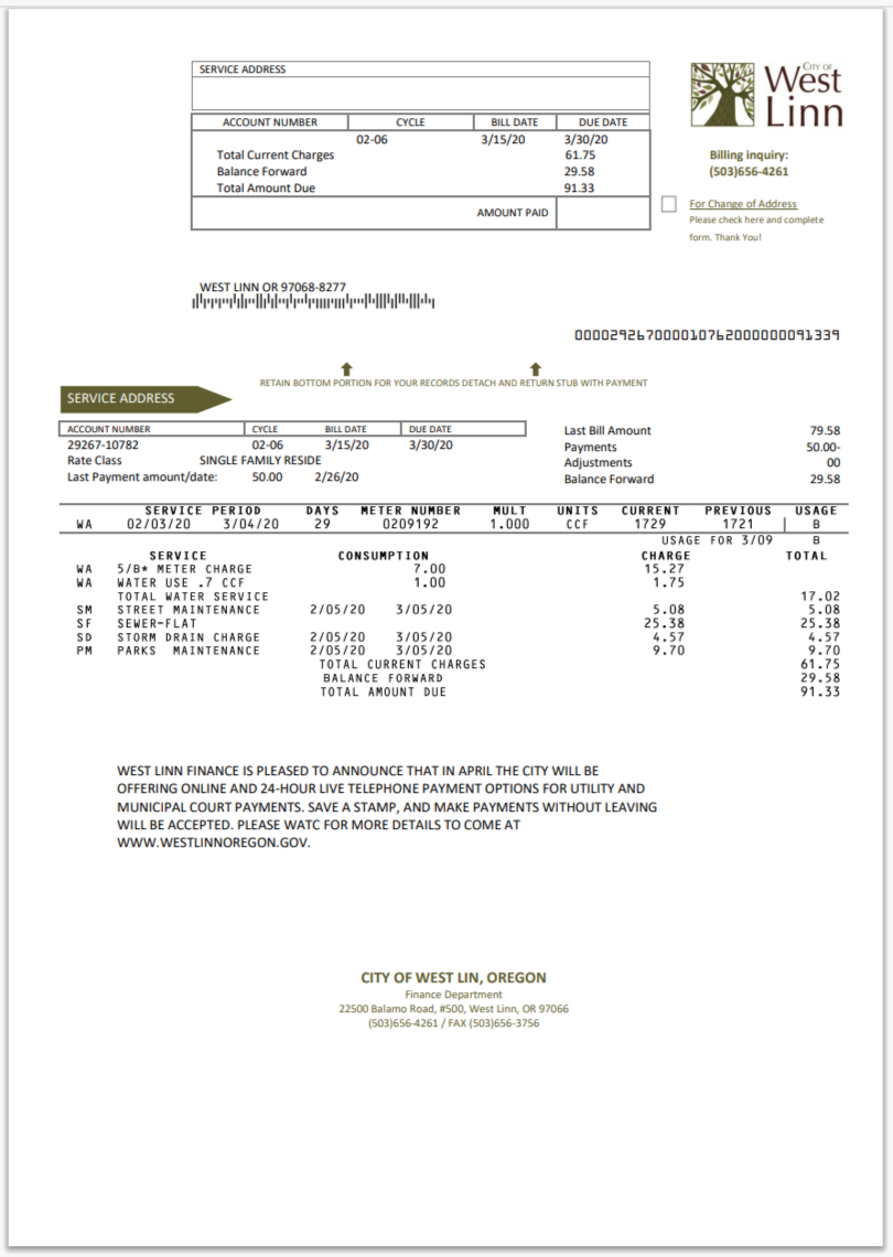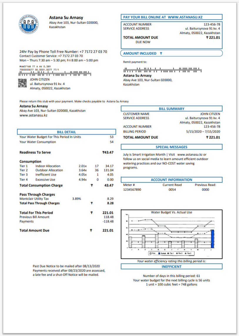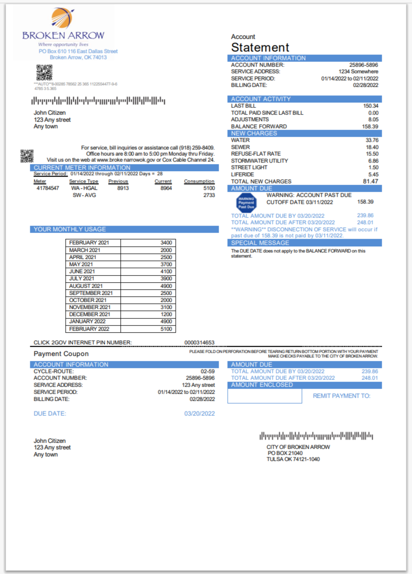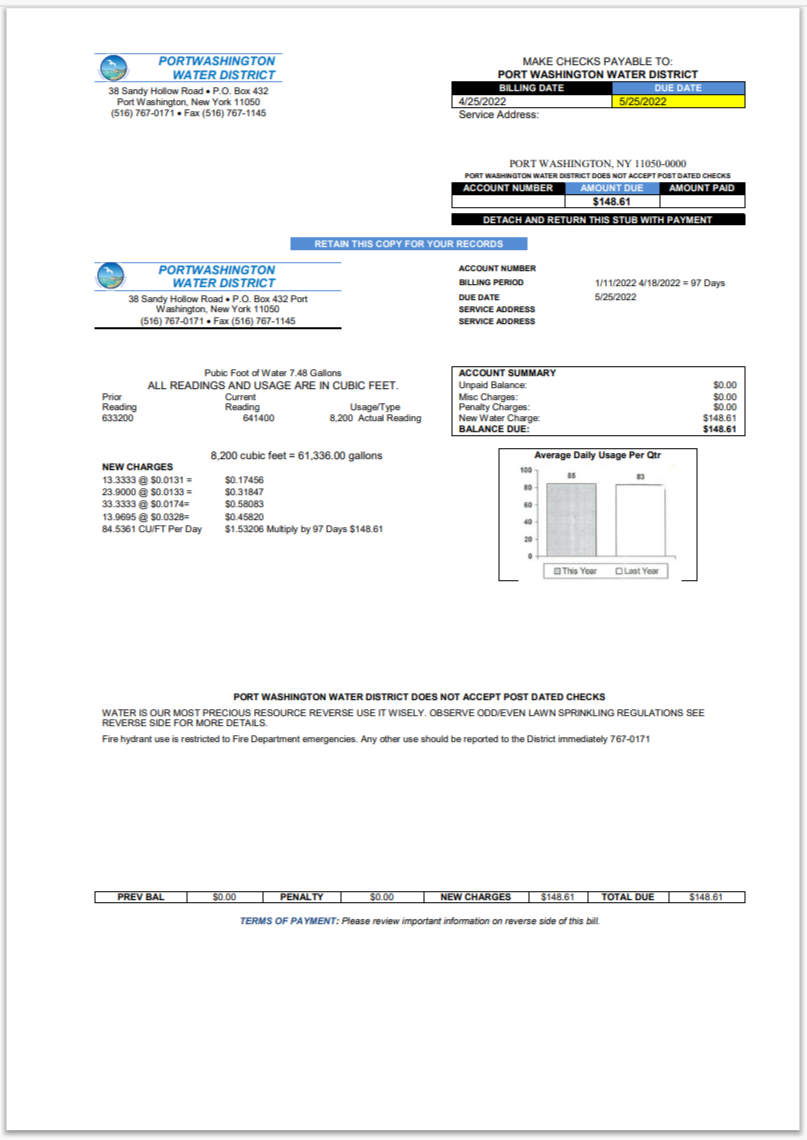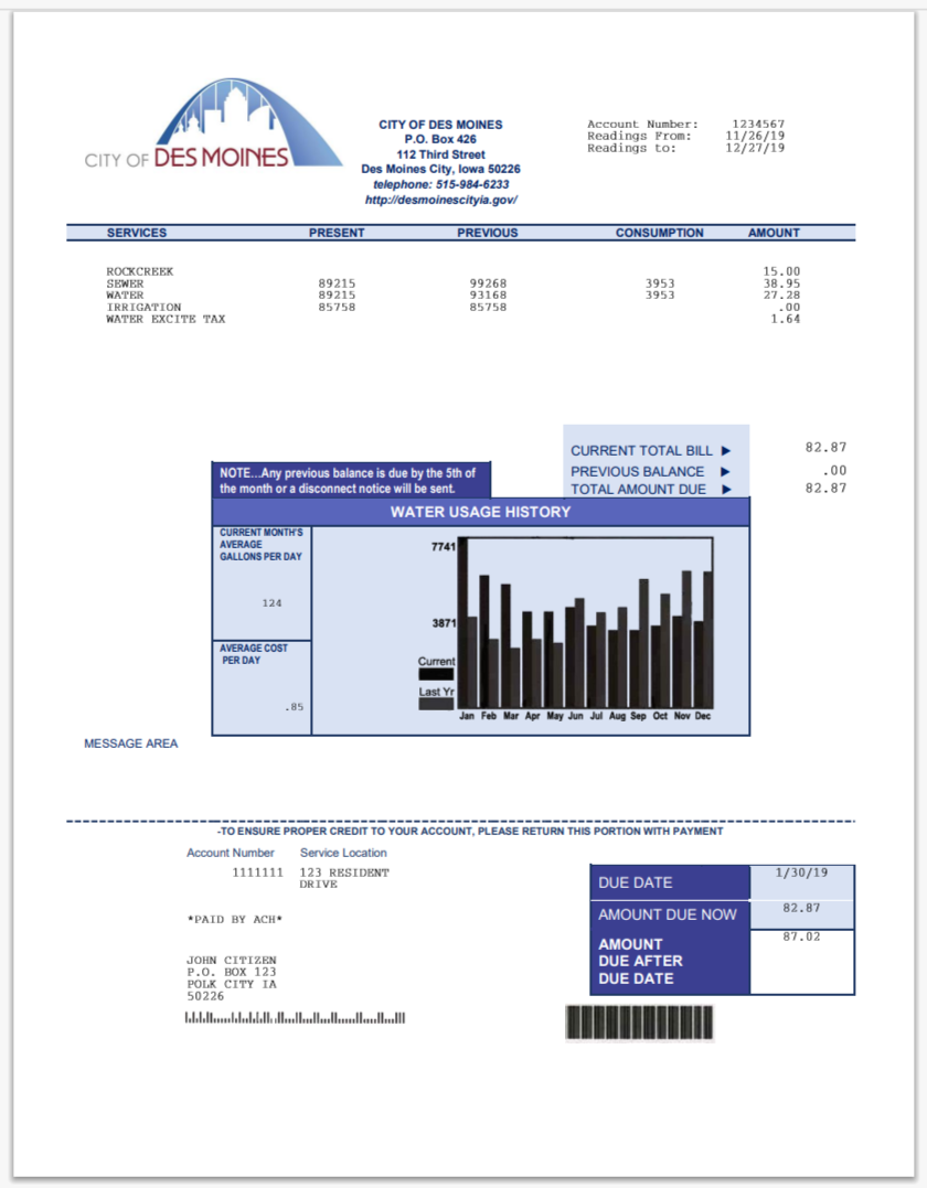 USA City Of Utility Statement Water Utility Bill Word And PDF