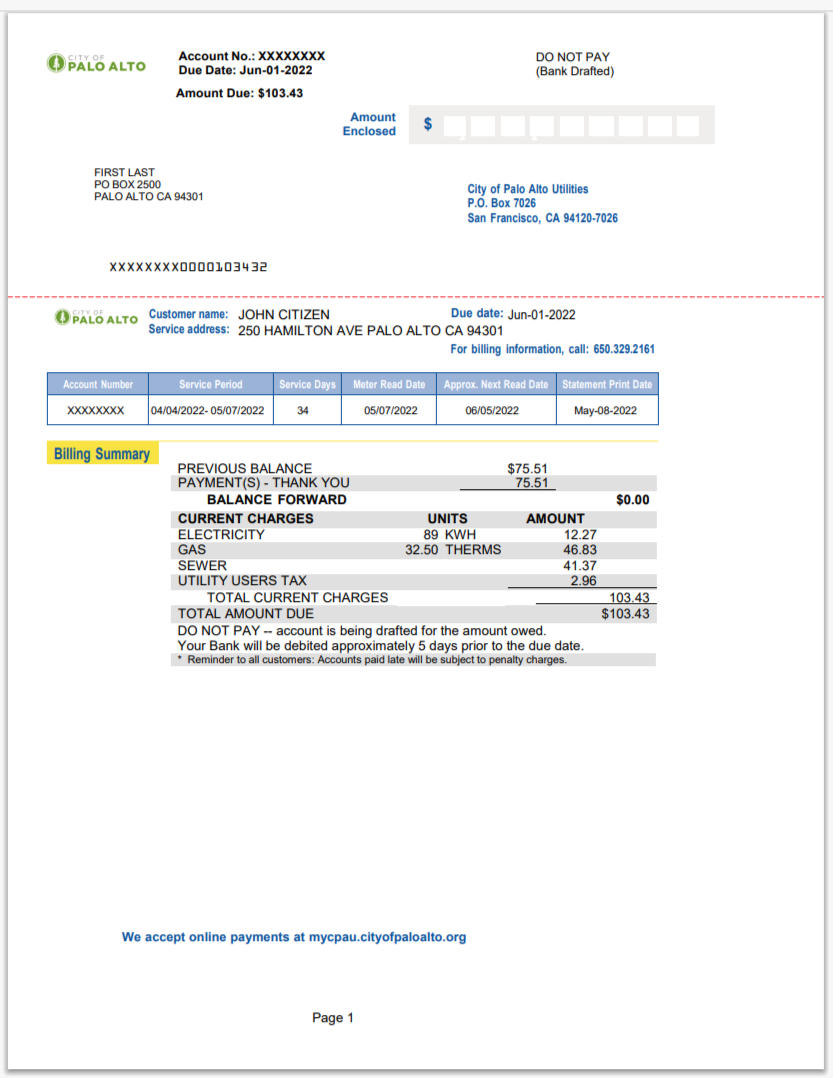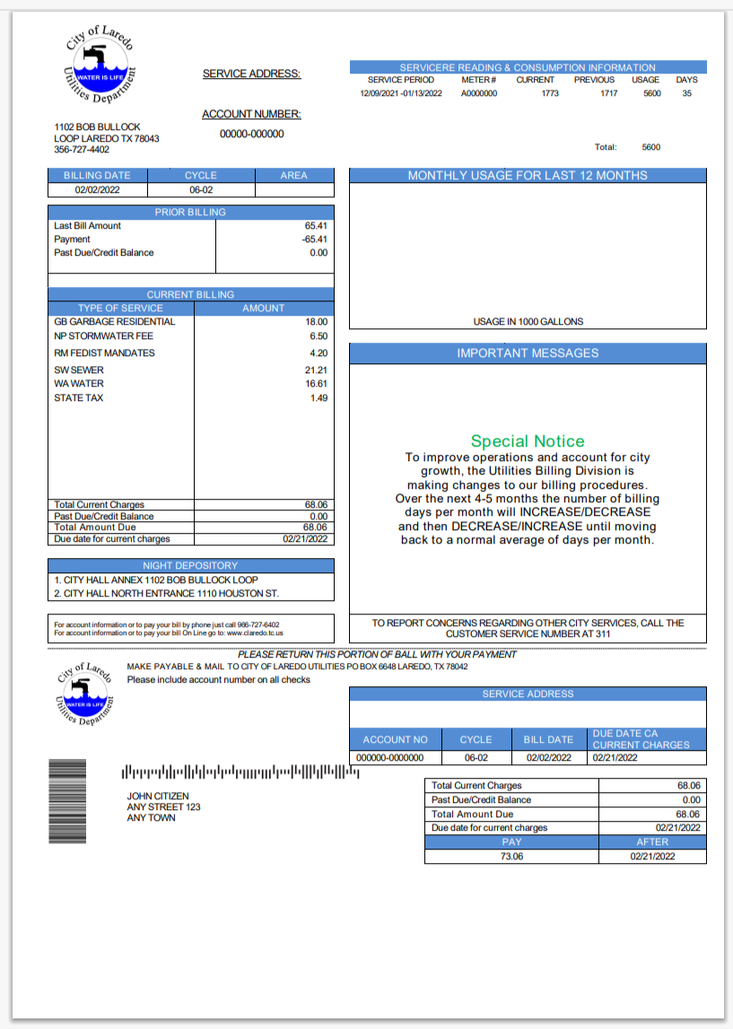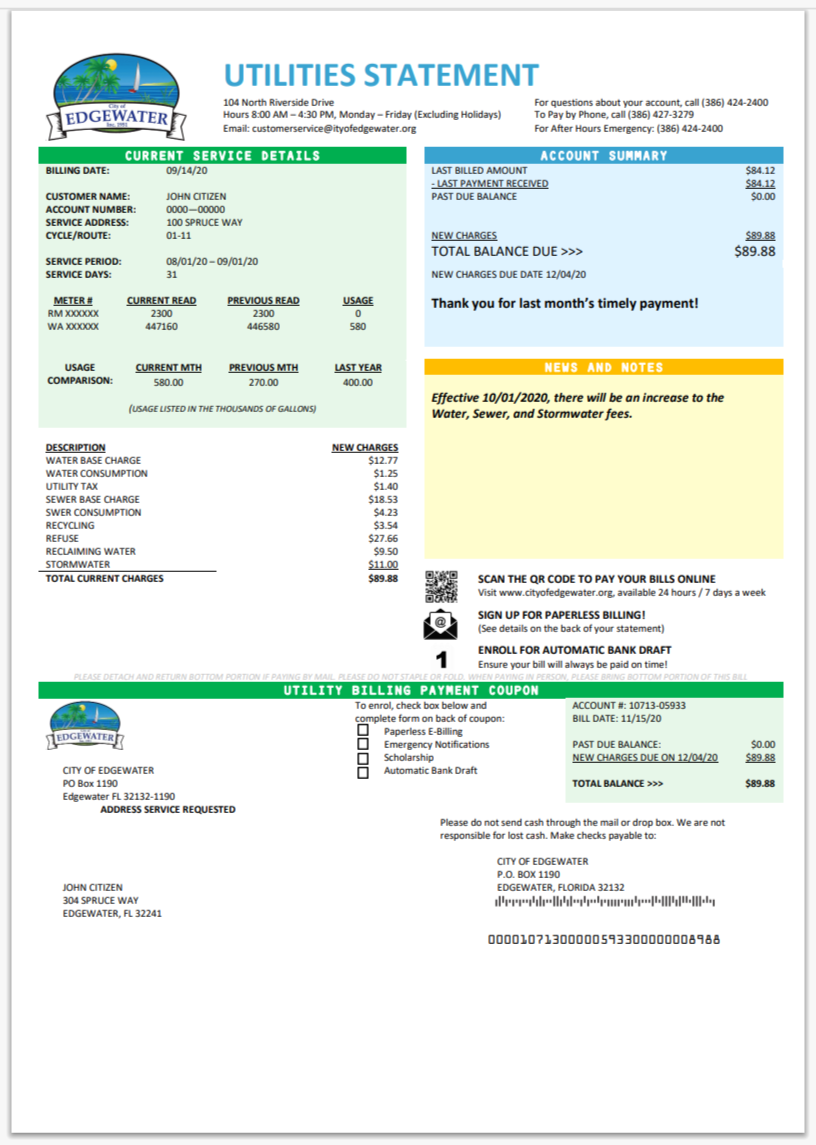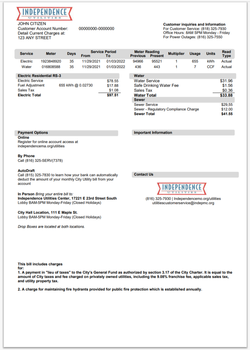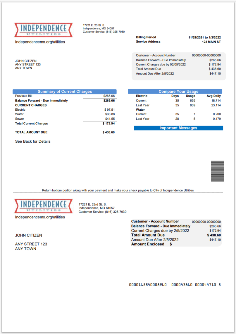 USA City Of Utility Statement Water Utility Bill Word And PDF