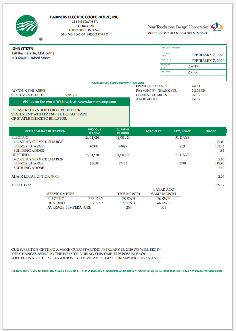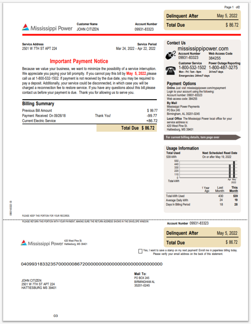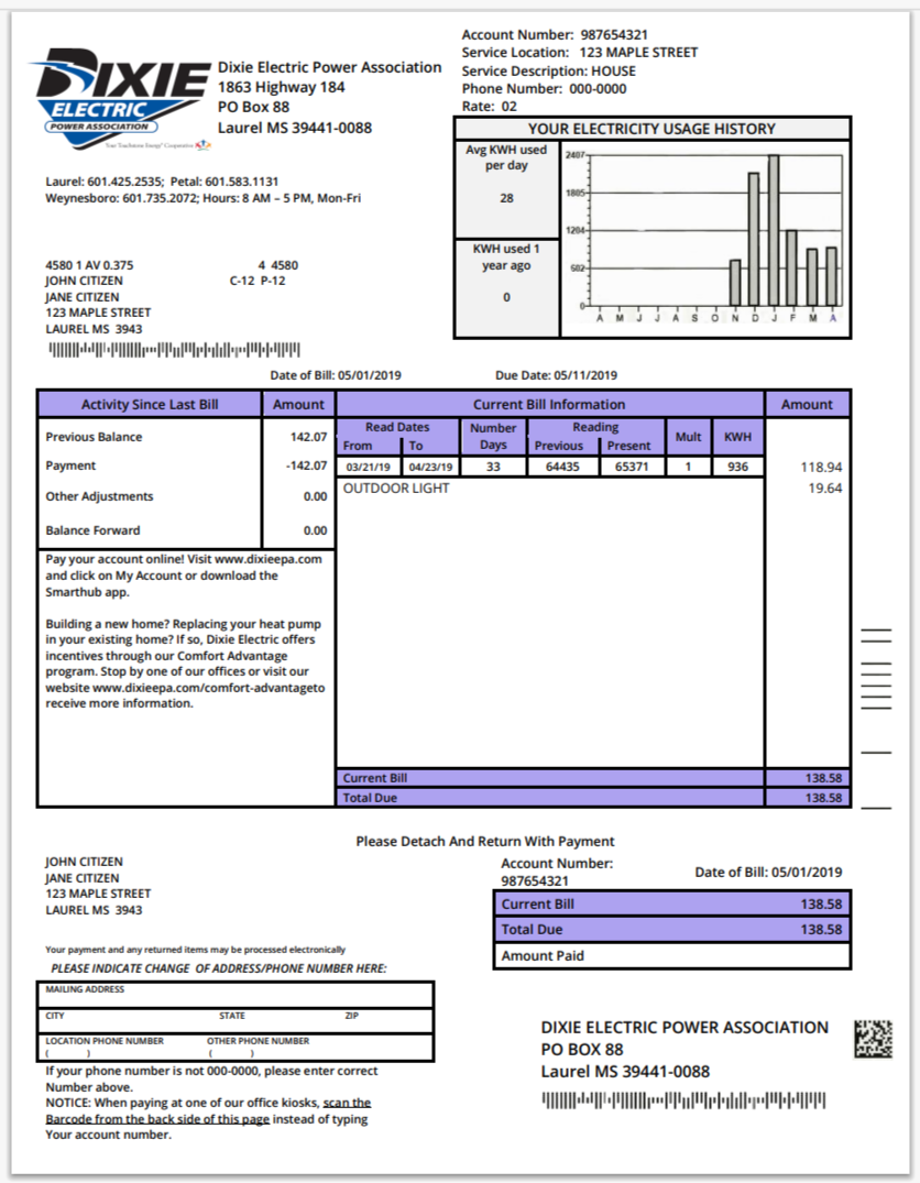 USA Mississippi Dixie Electric Utility Bill Word And PDF