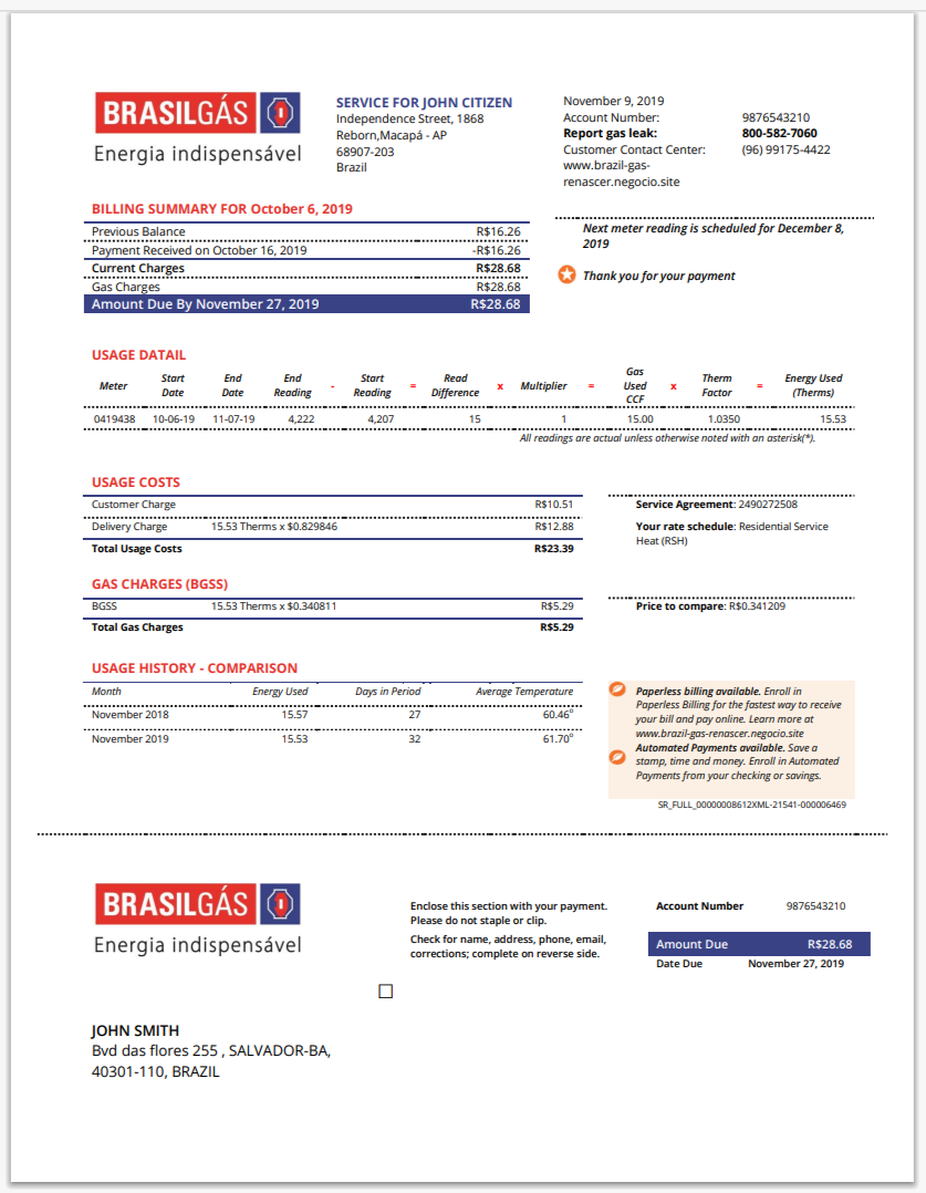 Italy Reliant Natural Gas Bill Template in Word And Pdf
