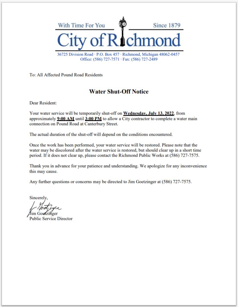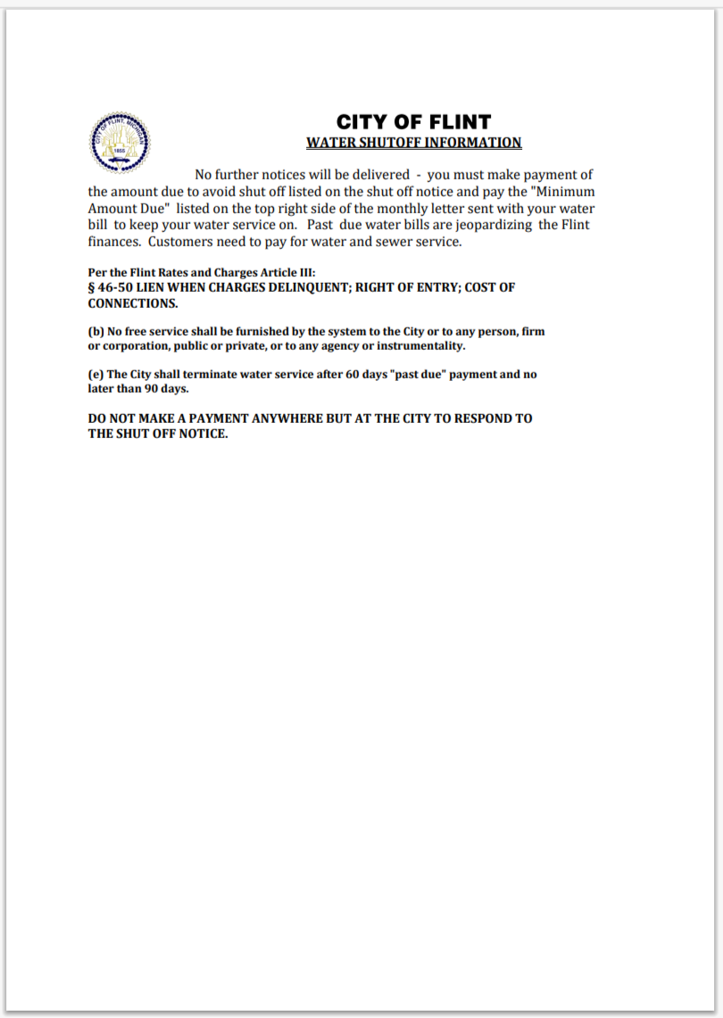 USA City Of Flint Michigan Water Utility Bill shutoff Notice Word And PDF V3