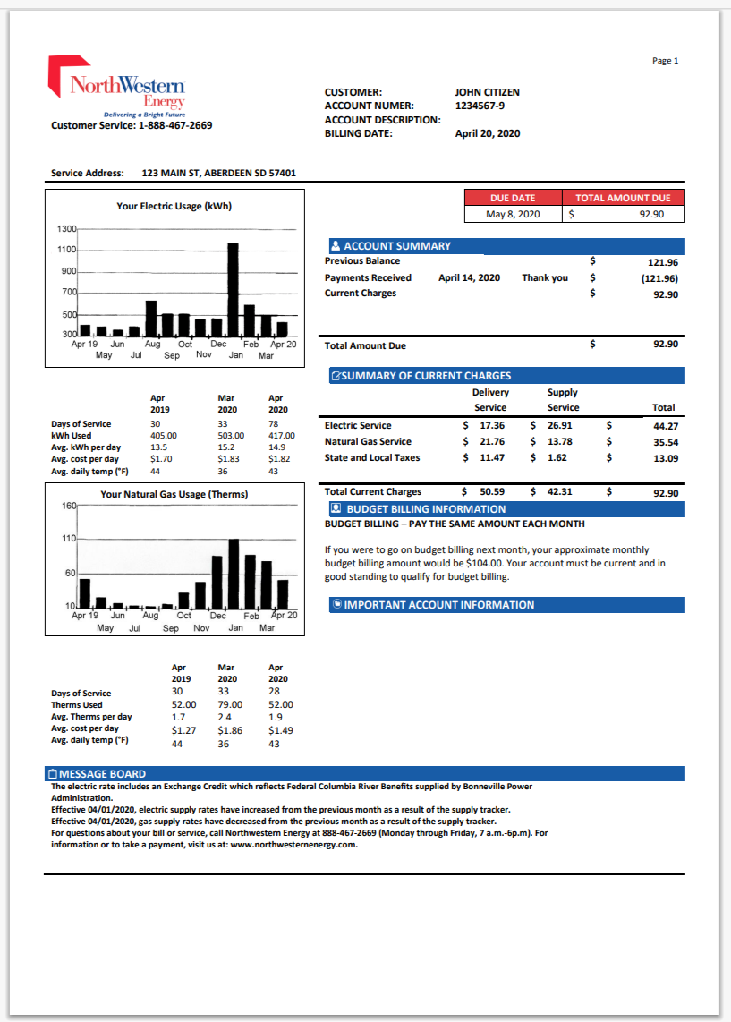 USA NorthWestern Energy Utility Bill Word And PDF Version 2