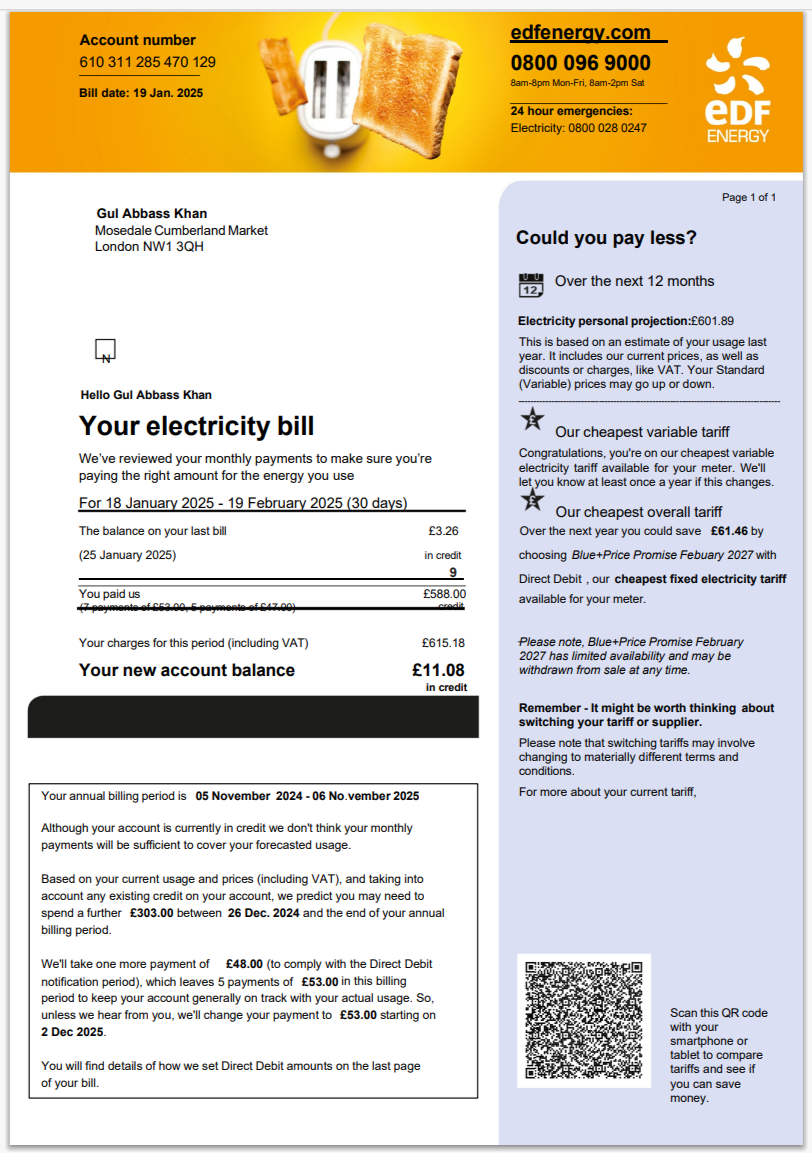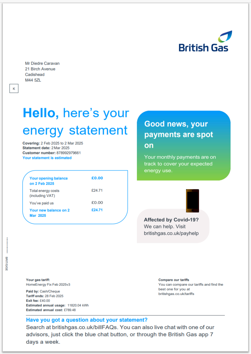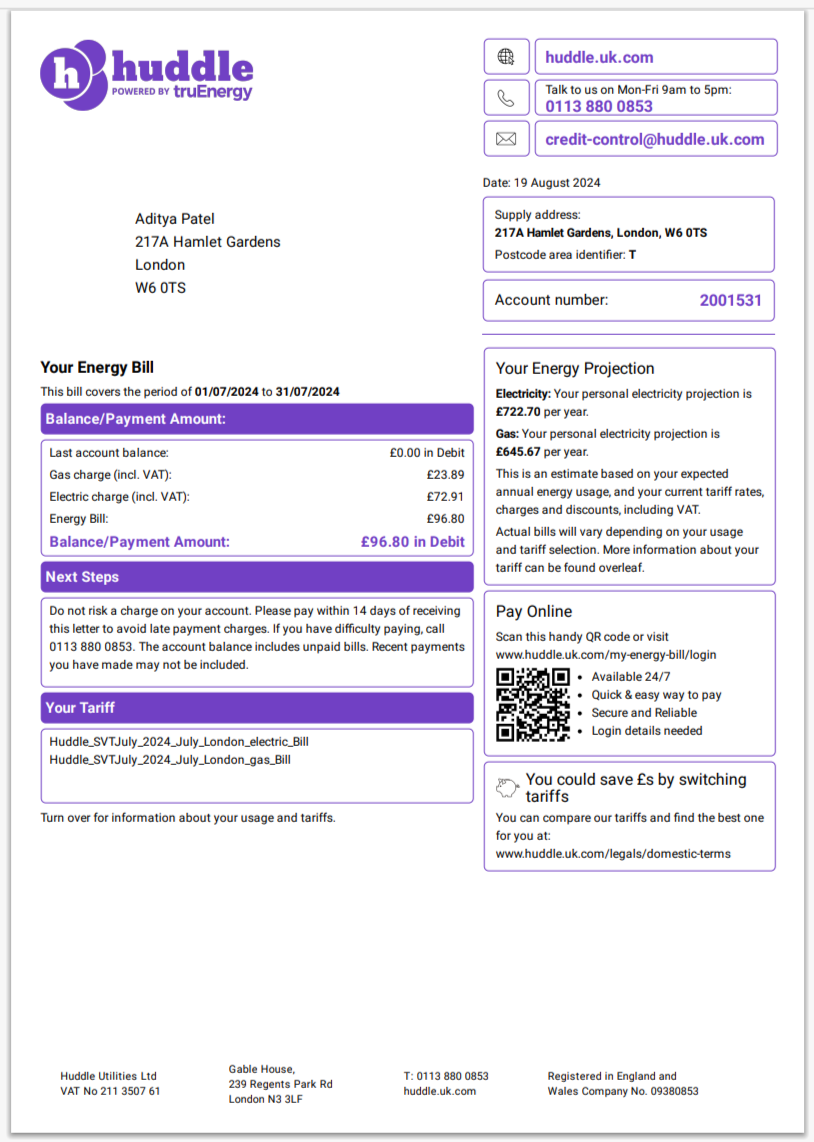 United Kingdom Utility Warehouse Multi-Service Bill Template in Word and Pdf
