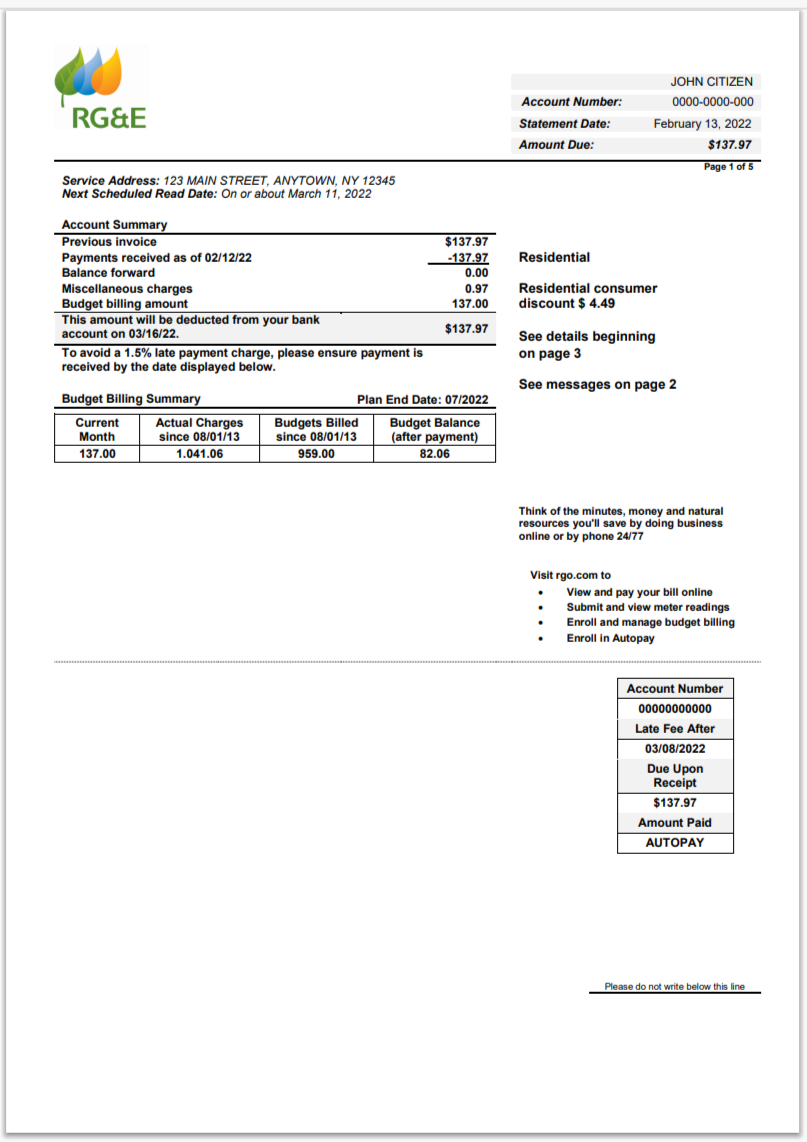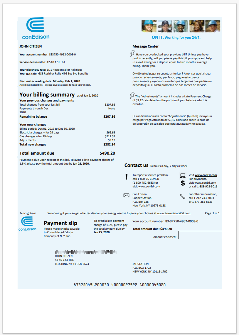 USA New York National Grid Utility Bill Word And PDF
