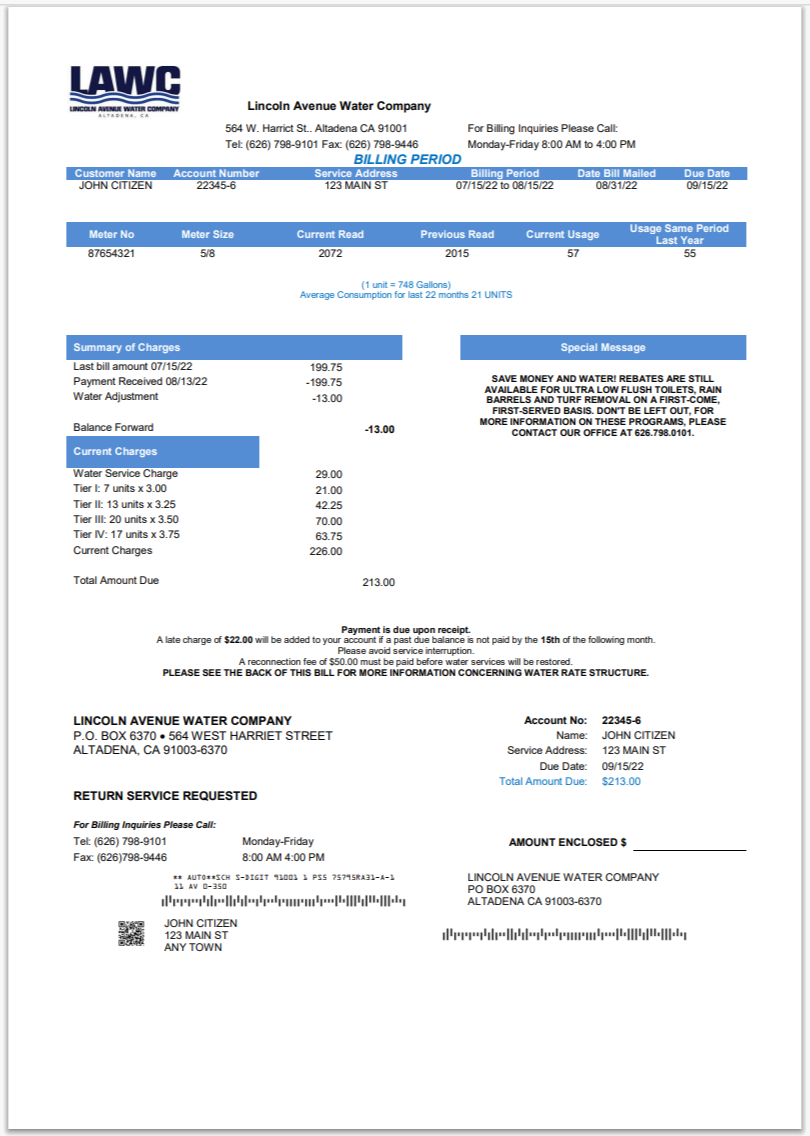 USA Consolidated Mutual Water Utility Bill Word And PDF V2