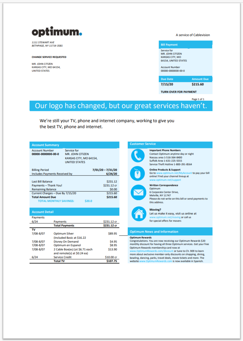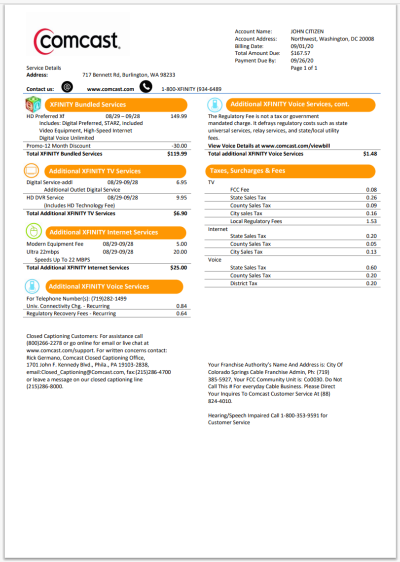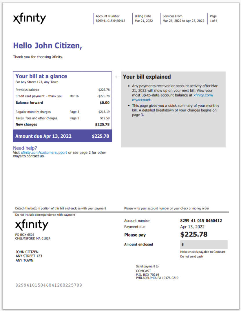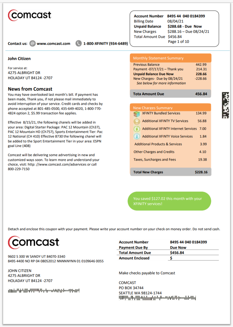 Xfinity Bill Template Format PSD