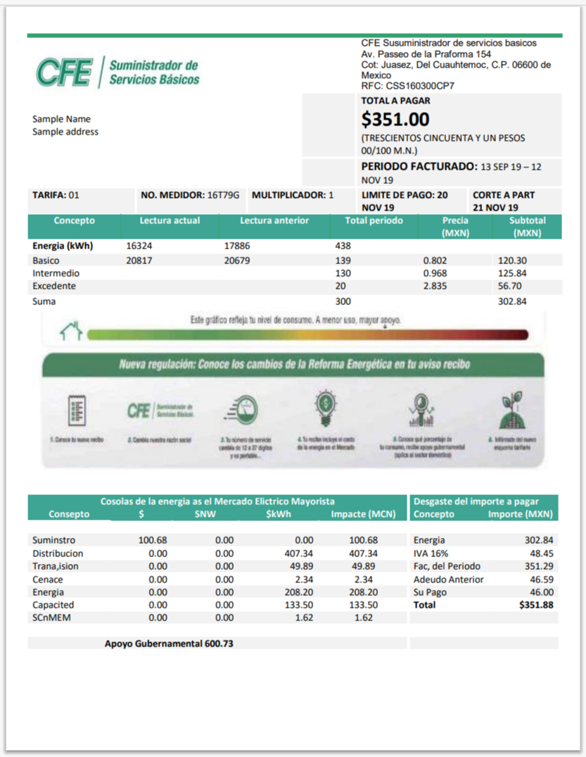 Mexico Federal Electricity Commission CFE Utility Bill Word And PDF
