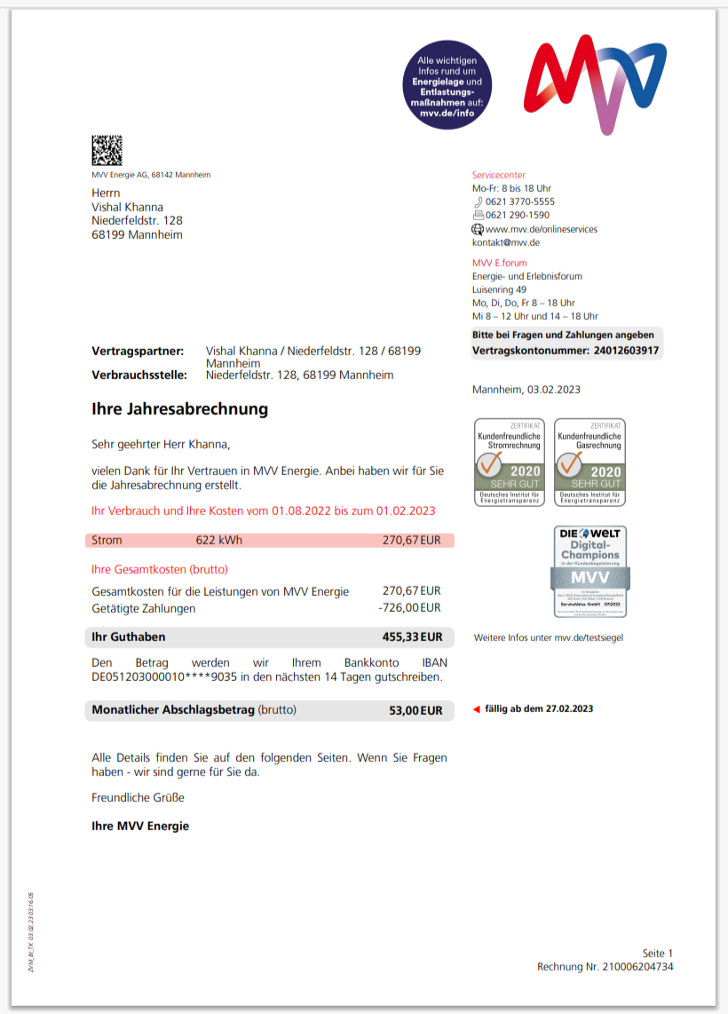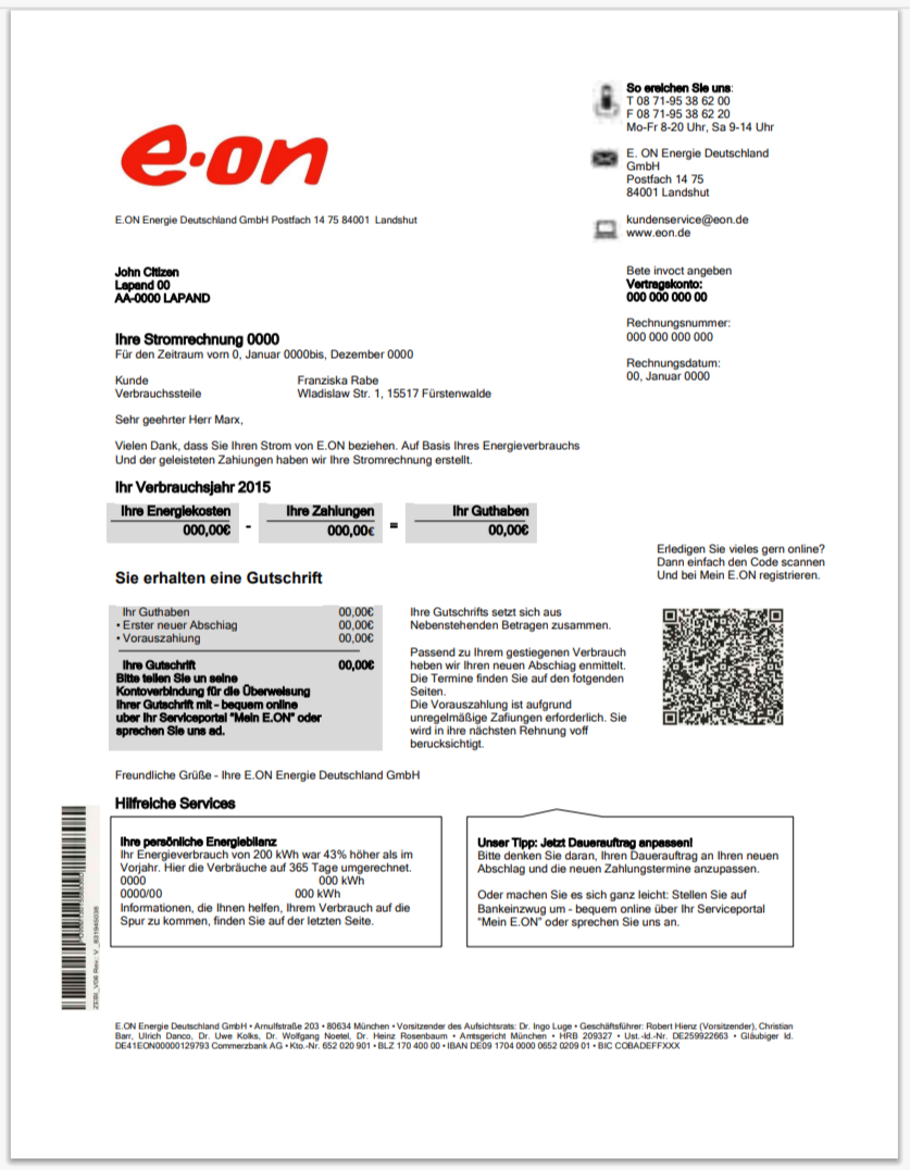 Germany Mainova Annual Electricity Bill Template in Word And Pdf