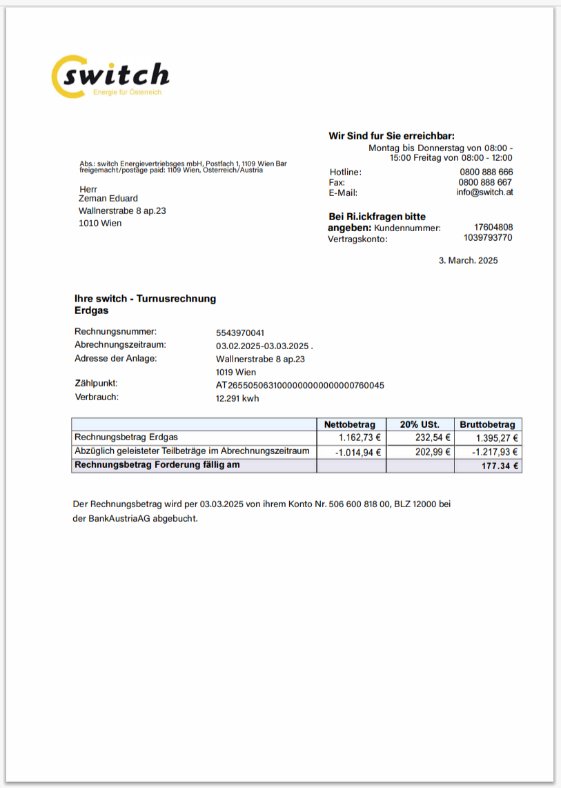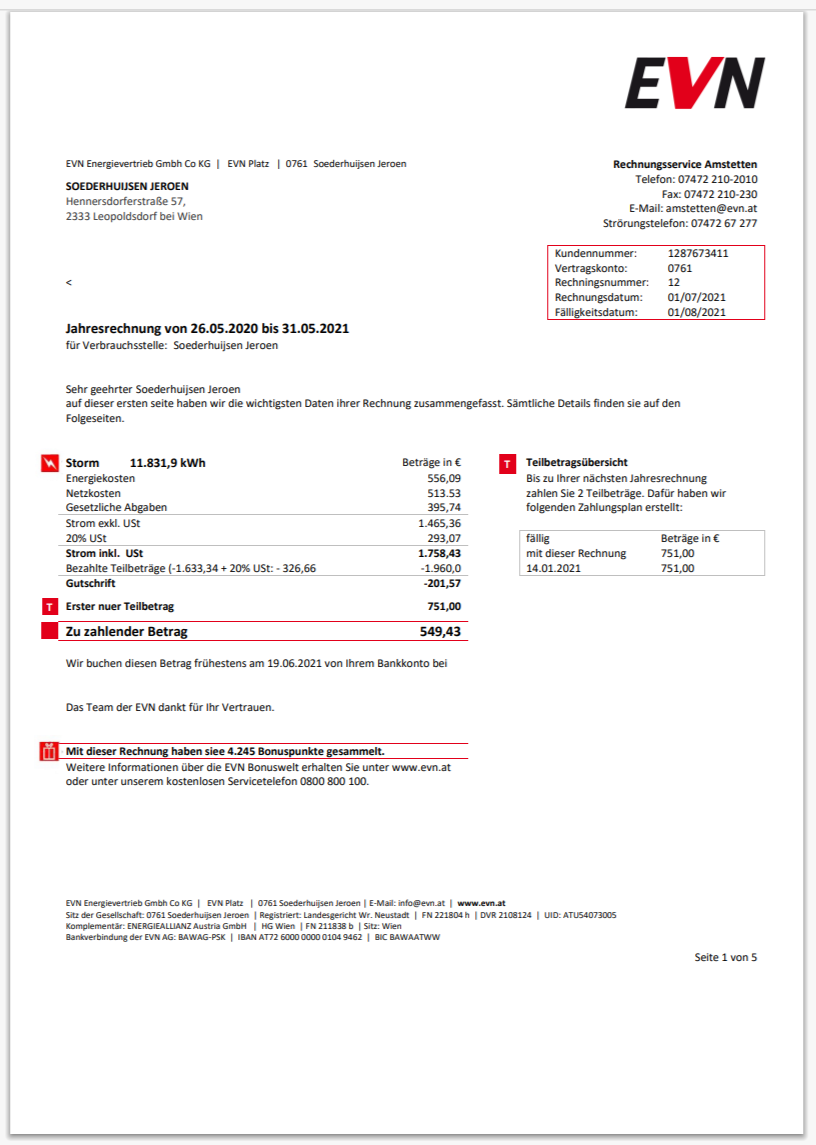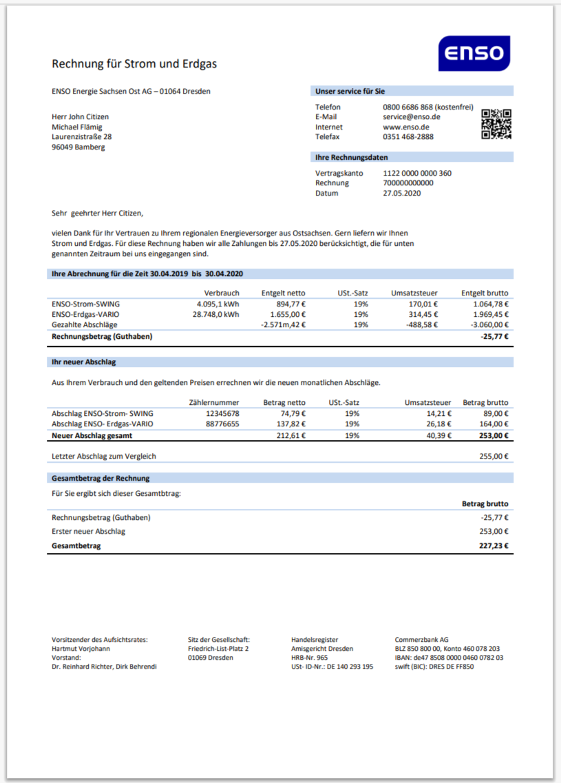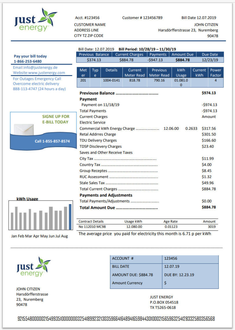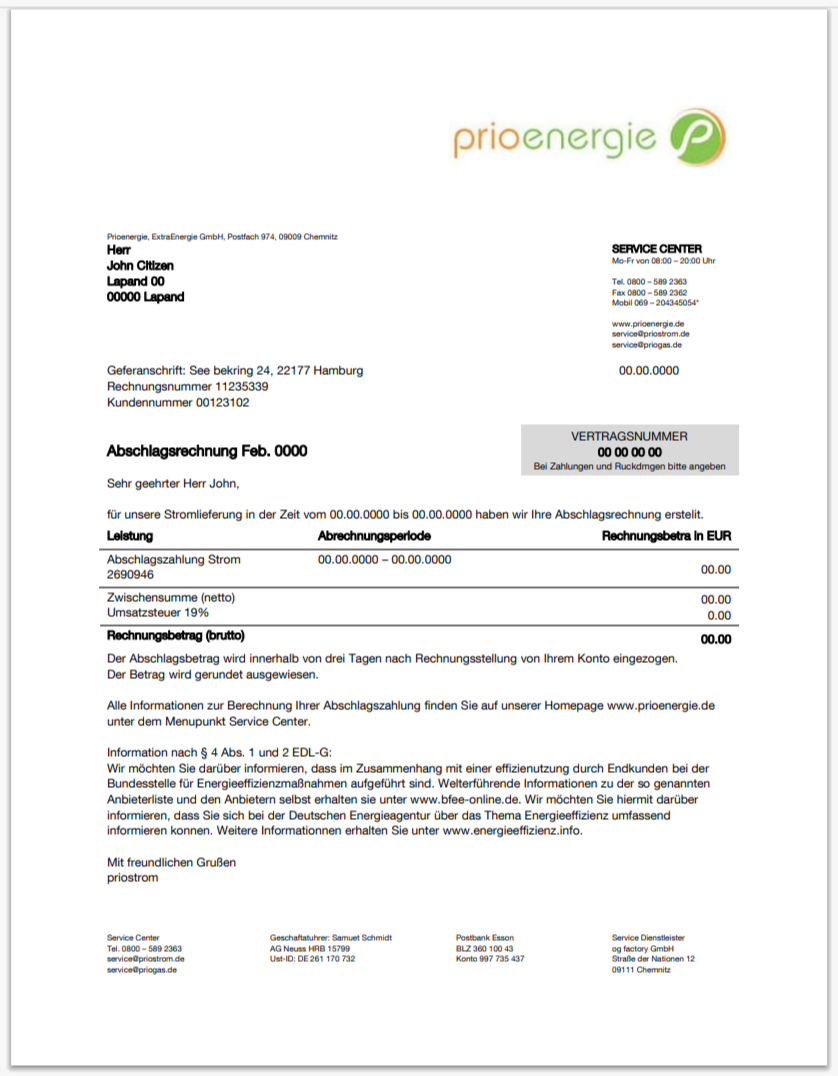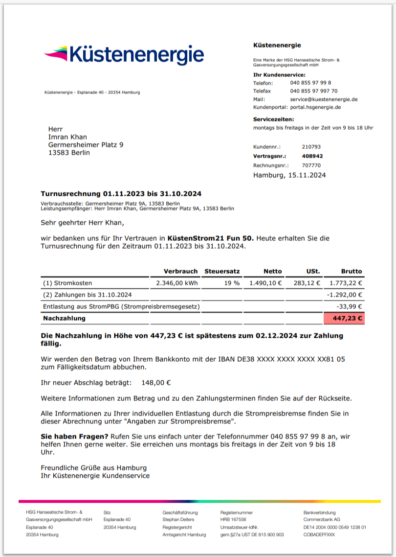 Germany Küstenenergie Electricity Bill Template in Word And Pdf