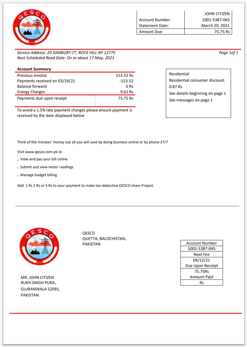 USA NES Electric Utility Bill Template in Word And Pdf