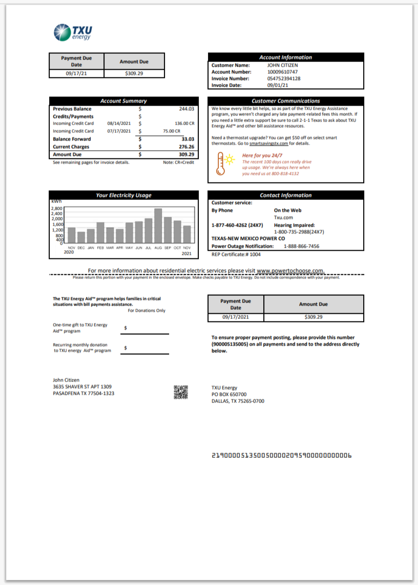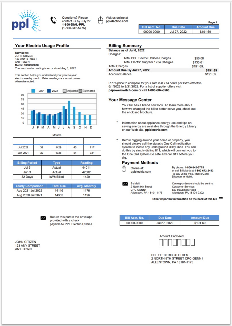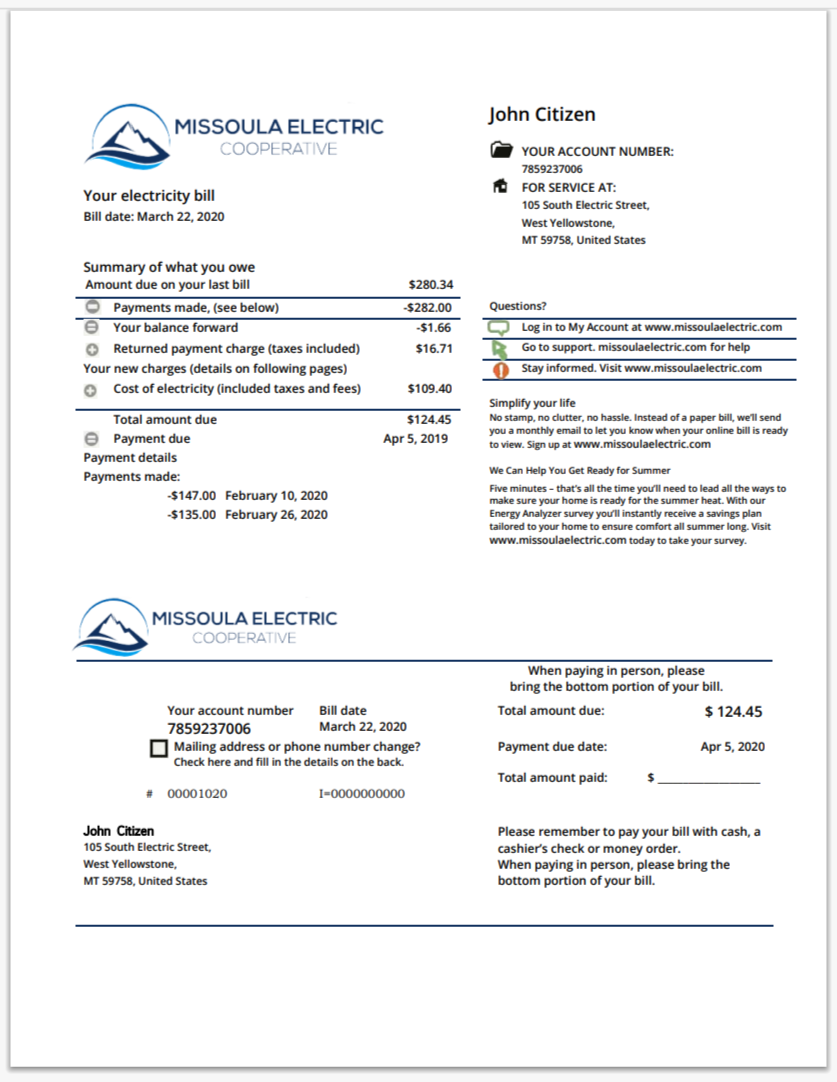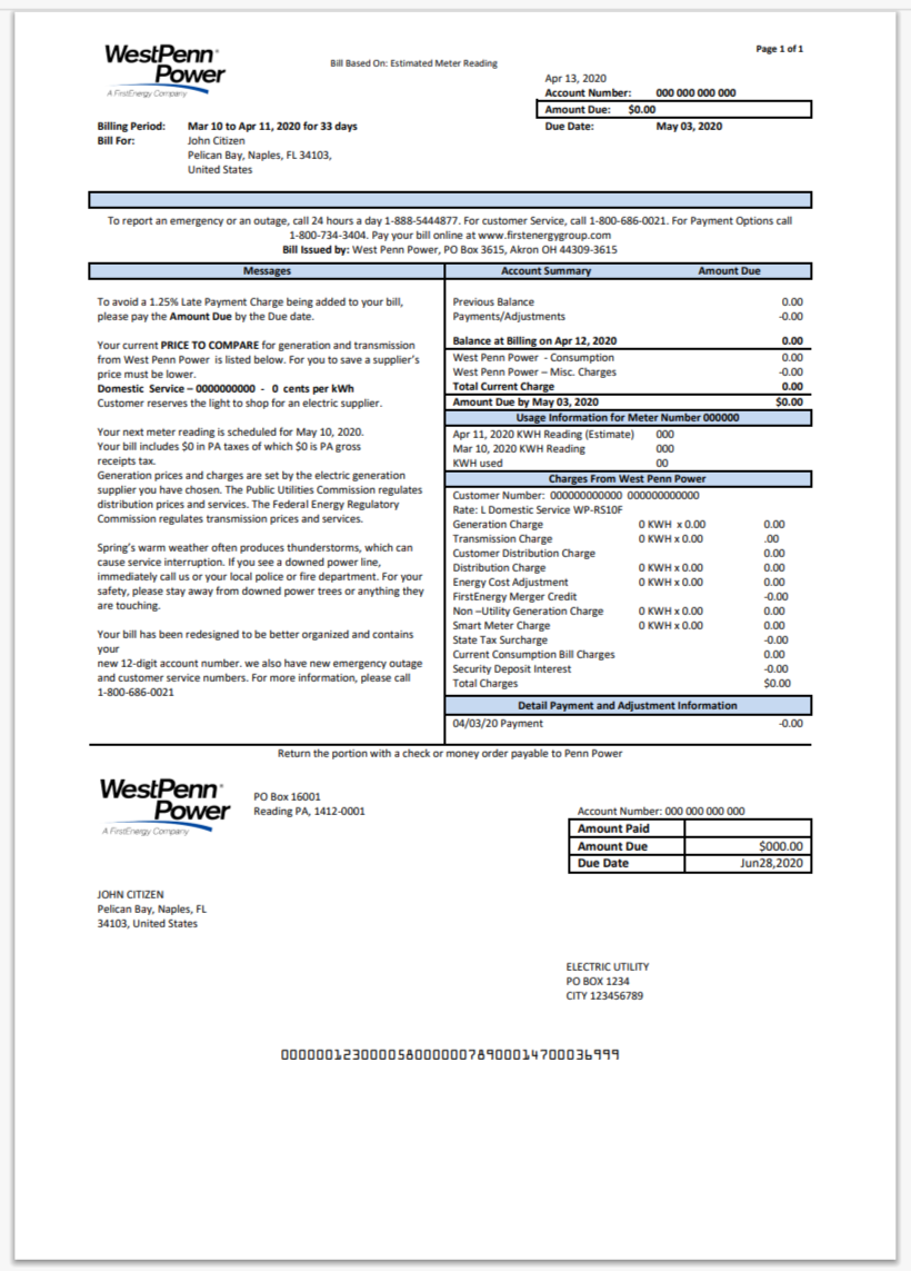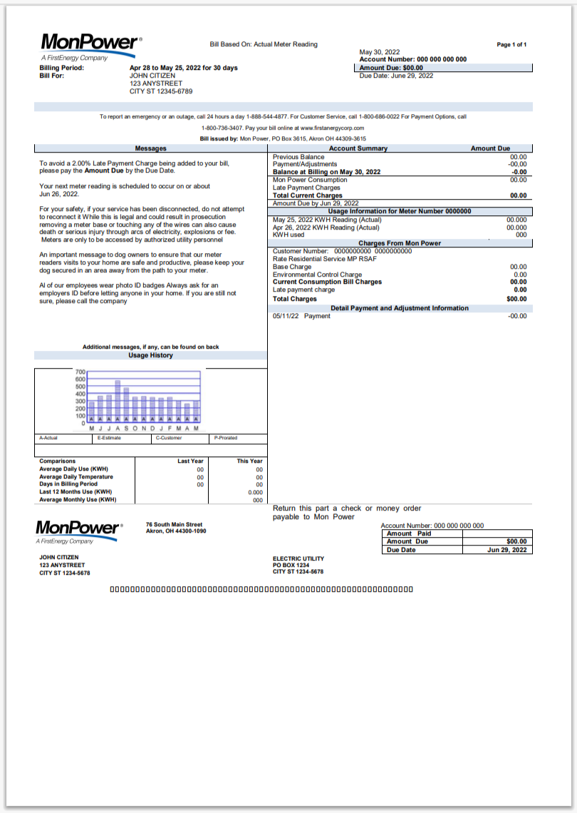 U.S. Utility Bill Template PSD
