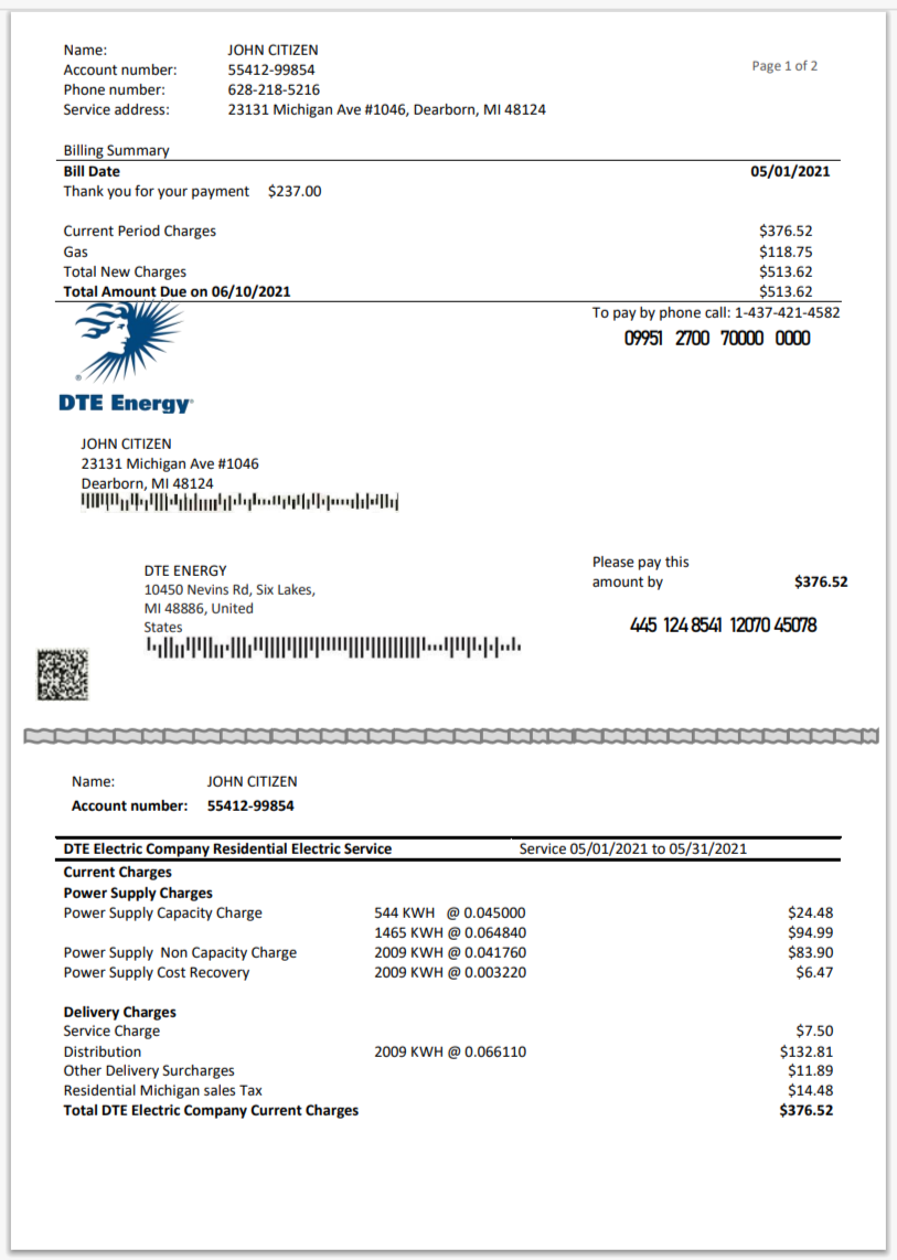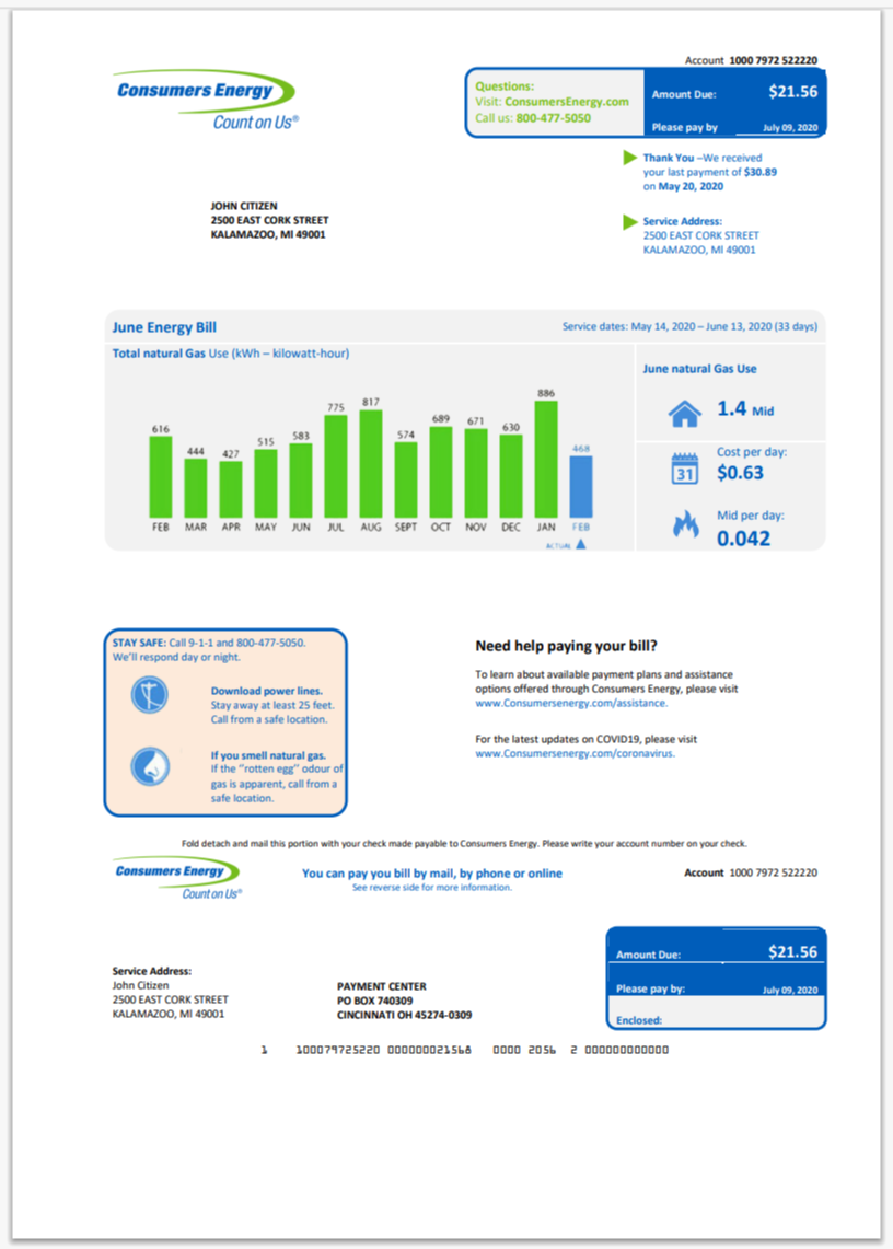 USA Michigan Gas Utilities Utility Bill Word And PDF