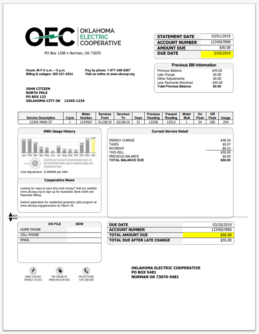 USA OUC Utility Billing Statement Template in Word And Pdf