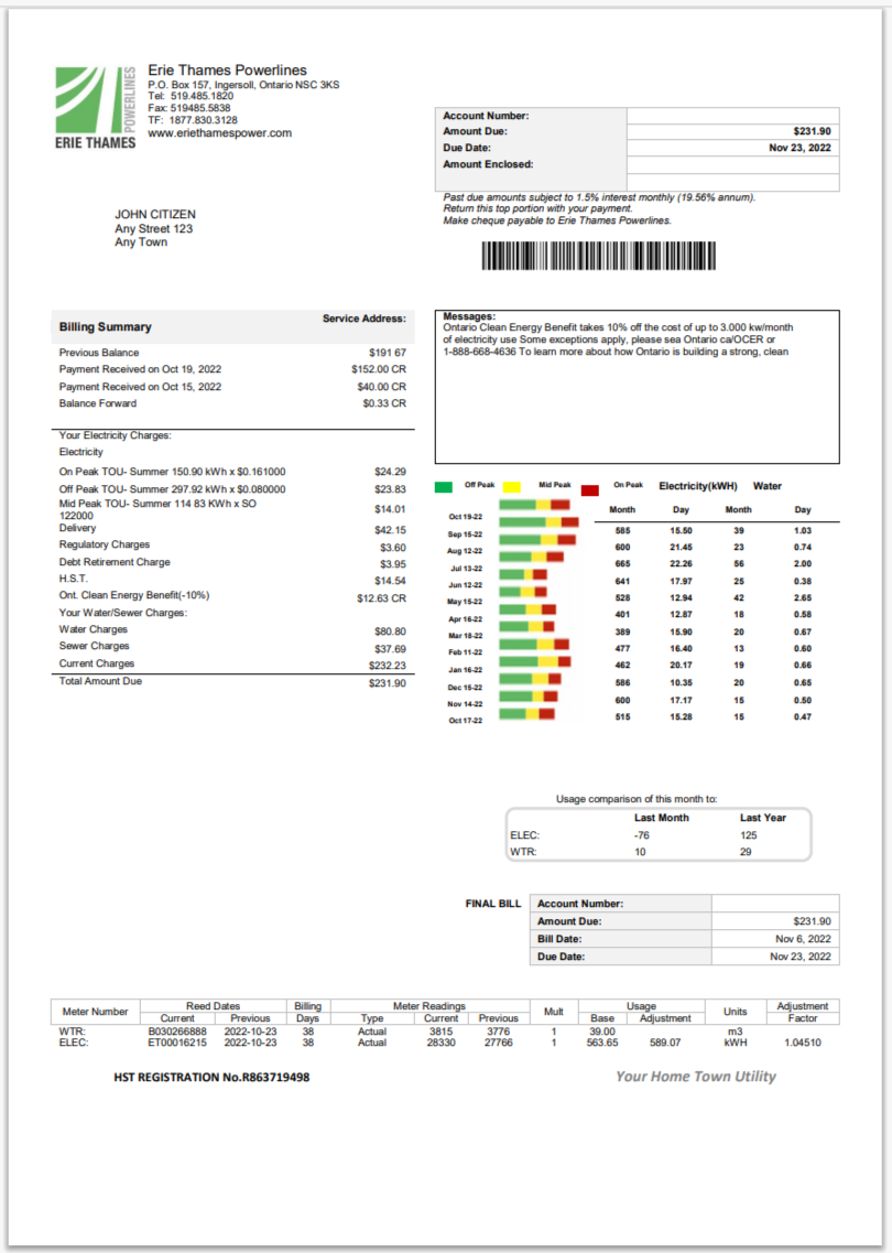 Canada City of Ottawa Water Utility Bill Template in Word And Pdf