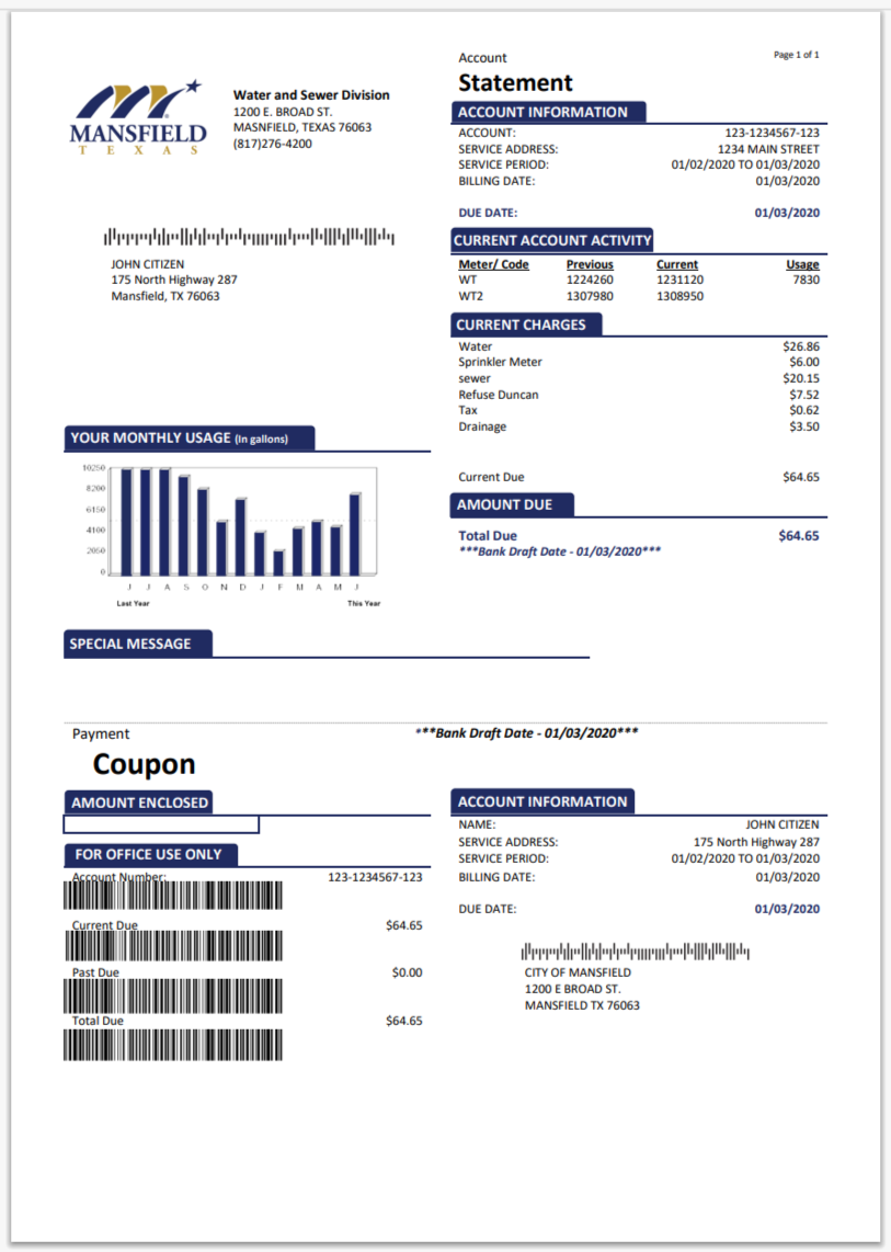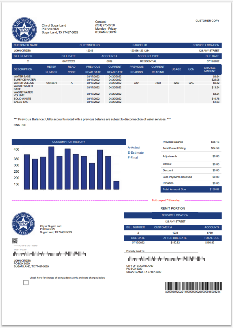 United States City of Frisco Utility Bill Template in Word And Pdf