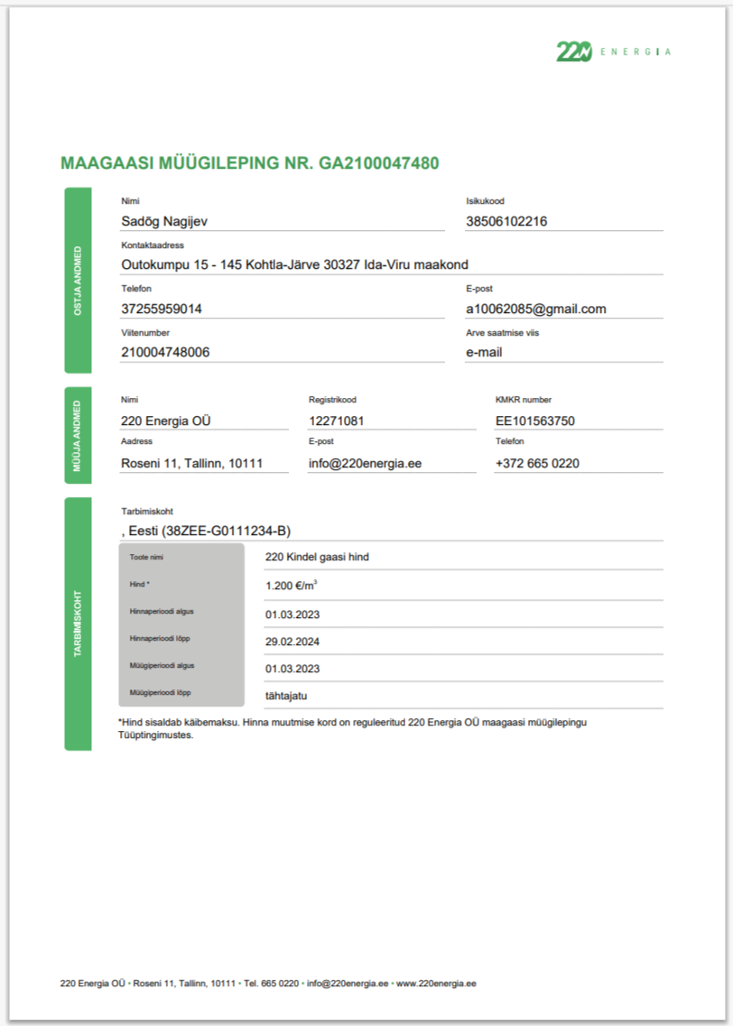 Italy Natural Gas Supply Bill from LUCE&GAS Powered by acea Word And Pdf