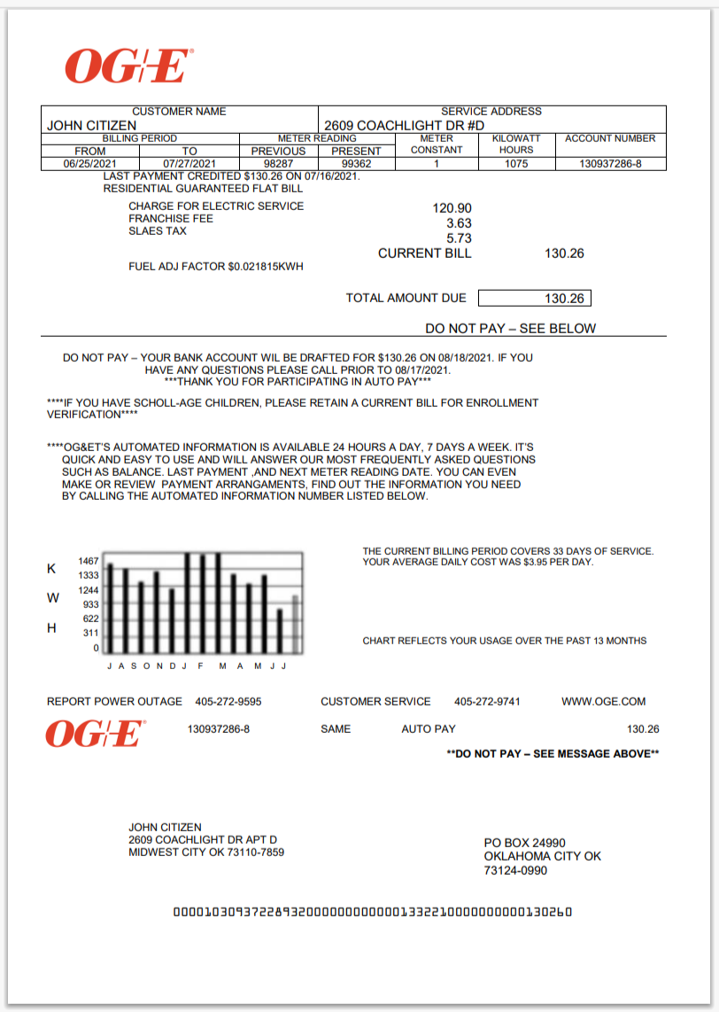 USA OG&E Utility Bill Guide Template in Word And Pdf