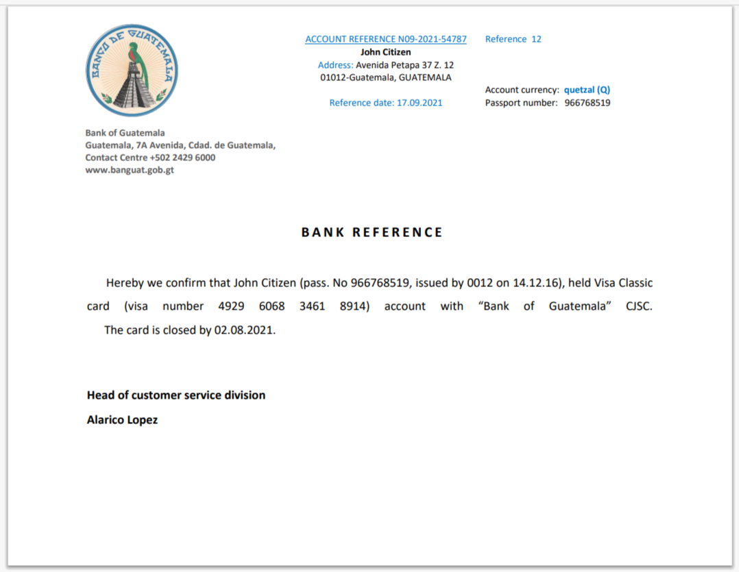 Costa Rica Banco Nacional De Costa Rica Bank Letter Reference Template Word And PDF
