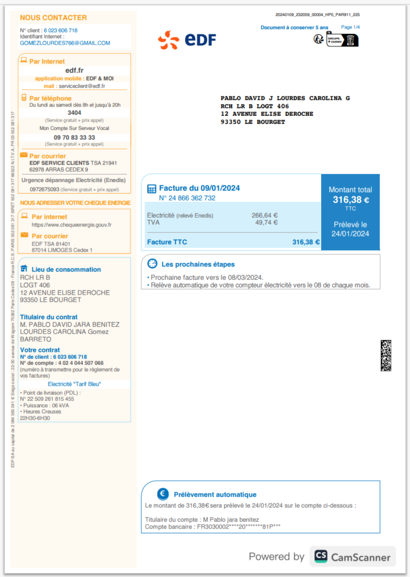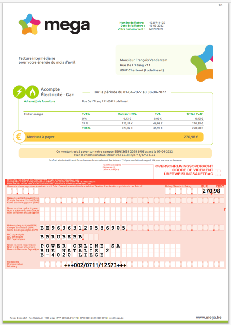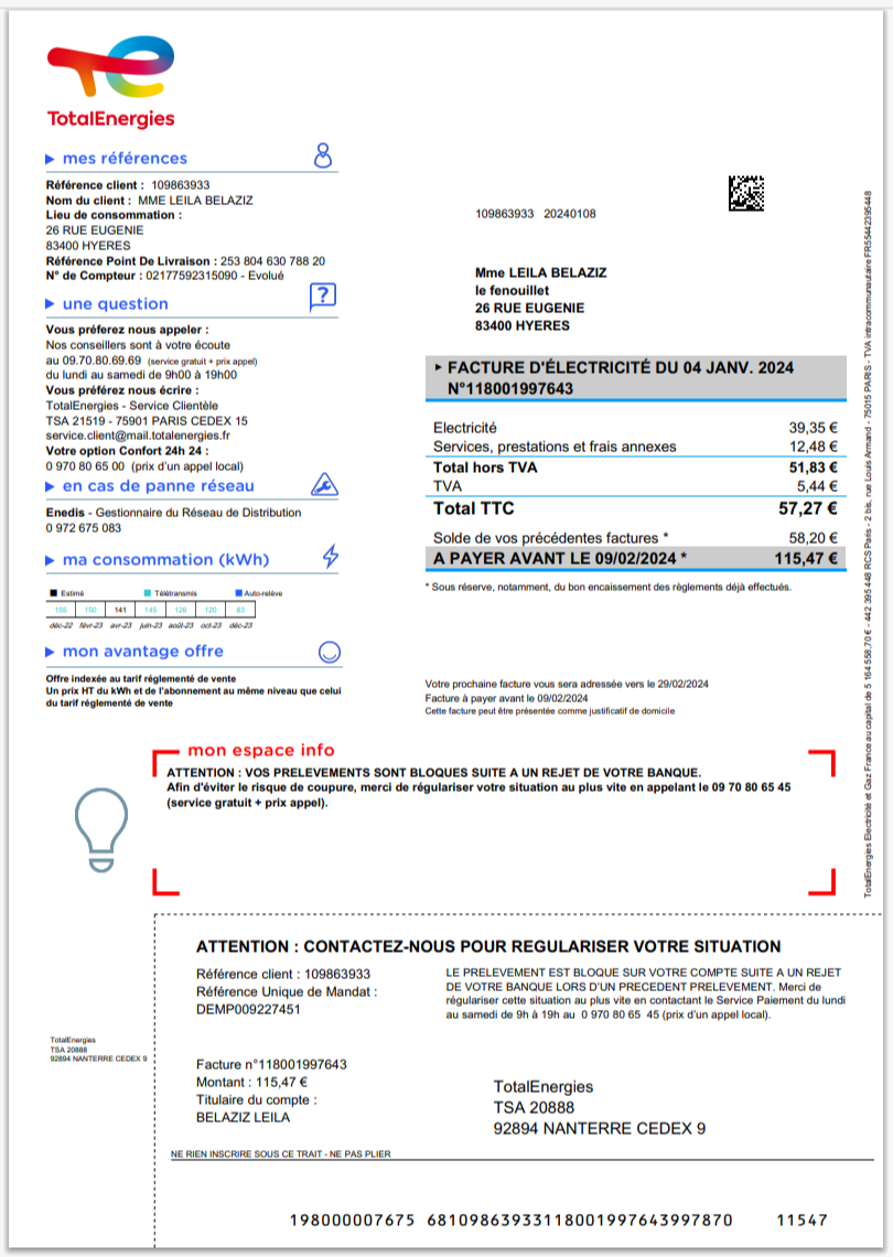 France ENERCOOP Electricity Bill Template in Word And Pdf