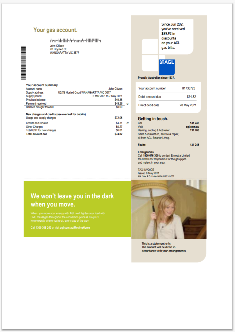 Australia AGL Better Bills Electricity Bill Template in Word And Pdf