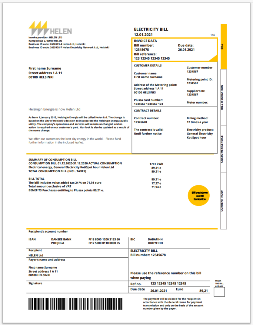 Sweden Fortum Electricity Bill Template in Word And Pdf