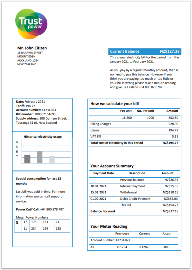 Australia AGL Editable Electricity Bill Template in Word and PDF