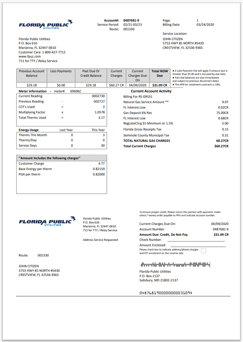 United States JEA Utility Bill Template in Word And Pdf